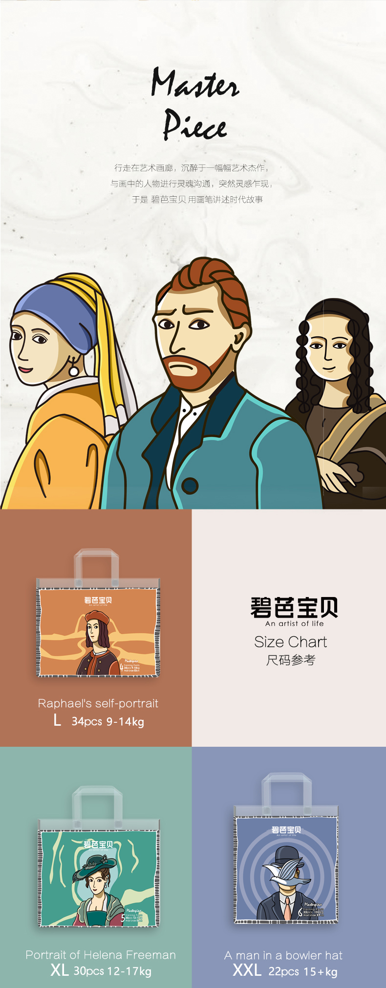 【试用装5片】碧芭宝贝大师杰作系列纸尿裤拉拉裤试用装