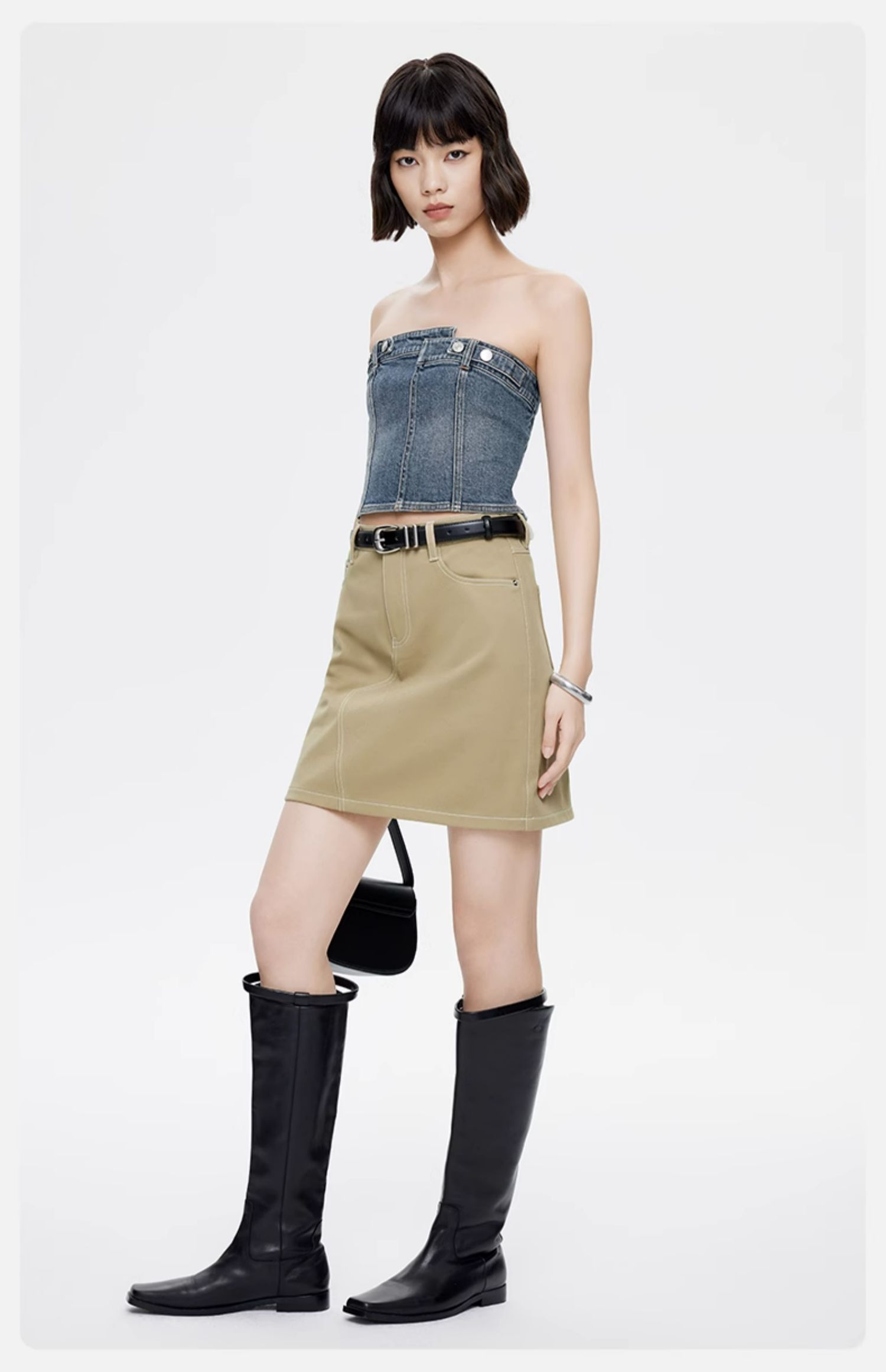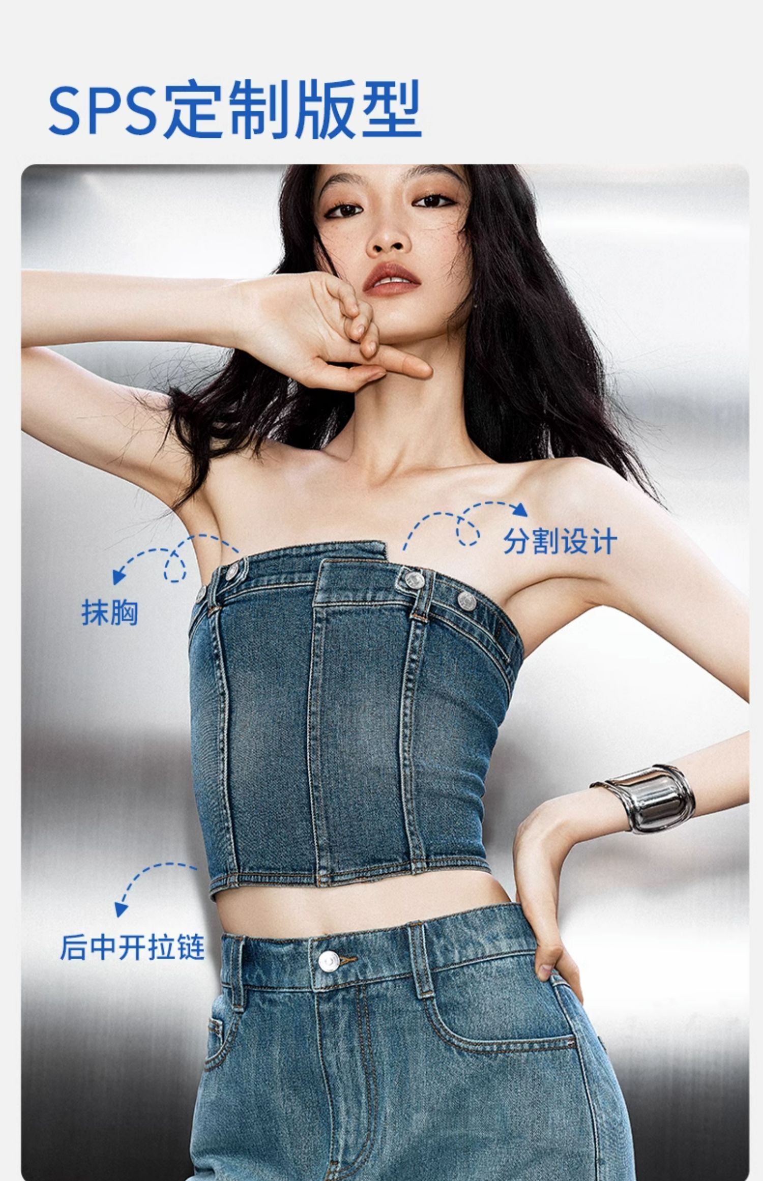 simplepieces背心女2023年夏季SPS错位设计牛仔抹胸上衣