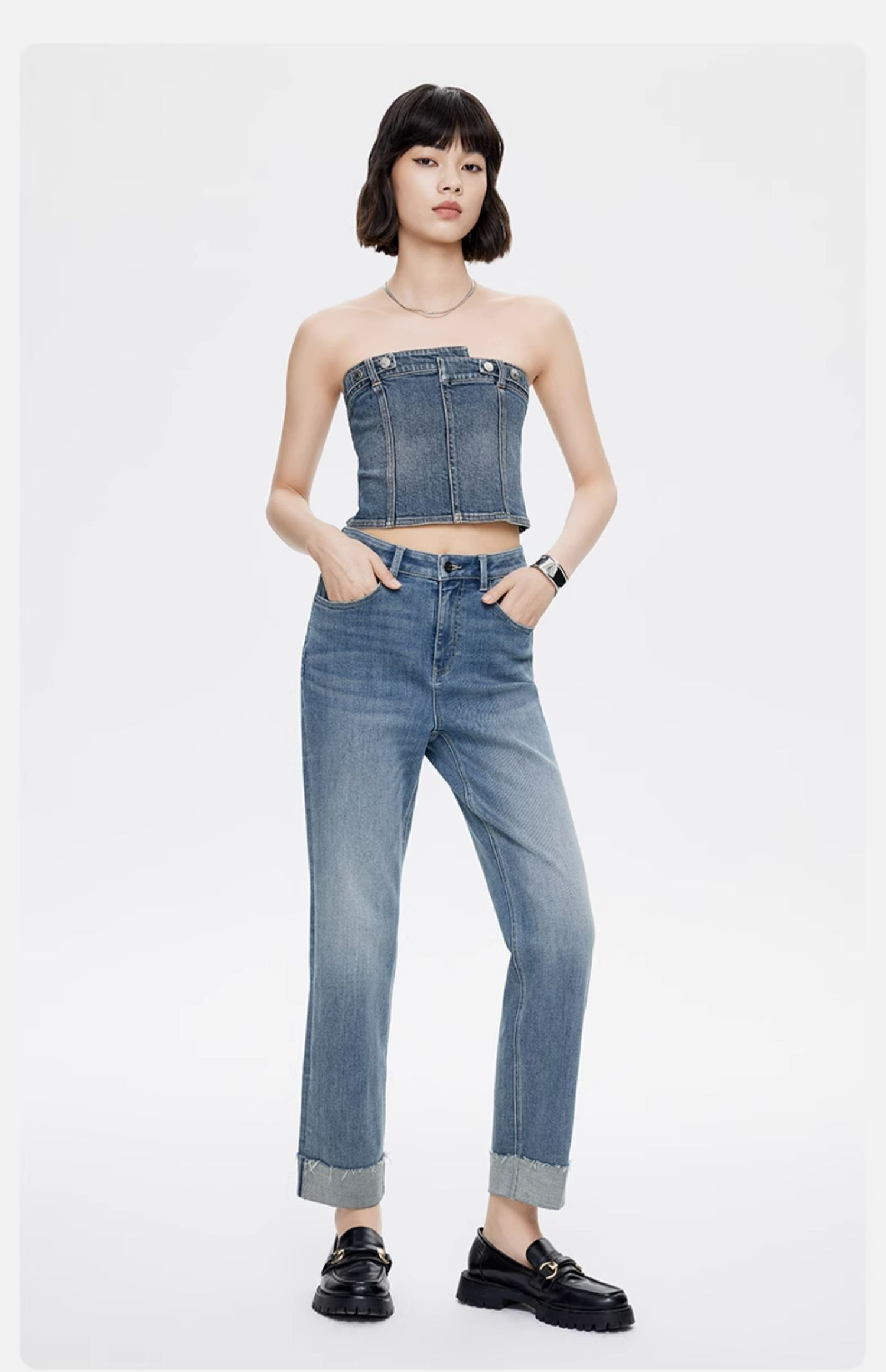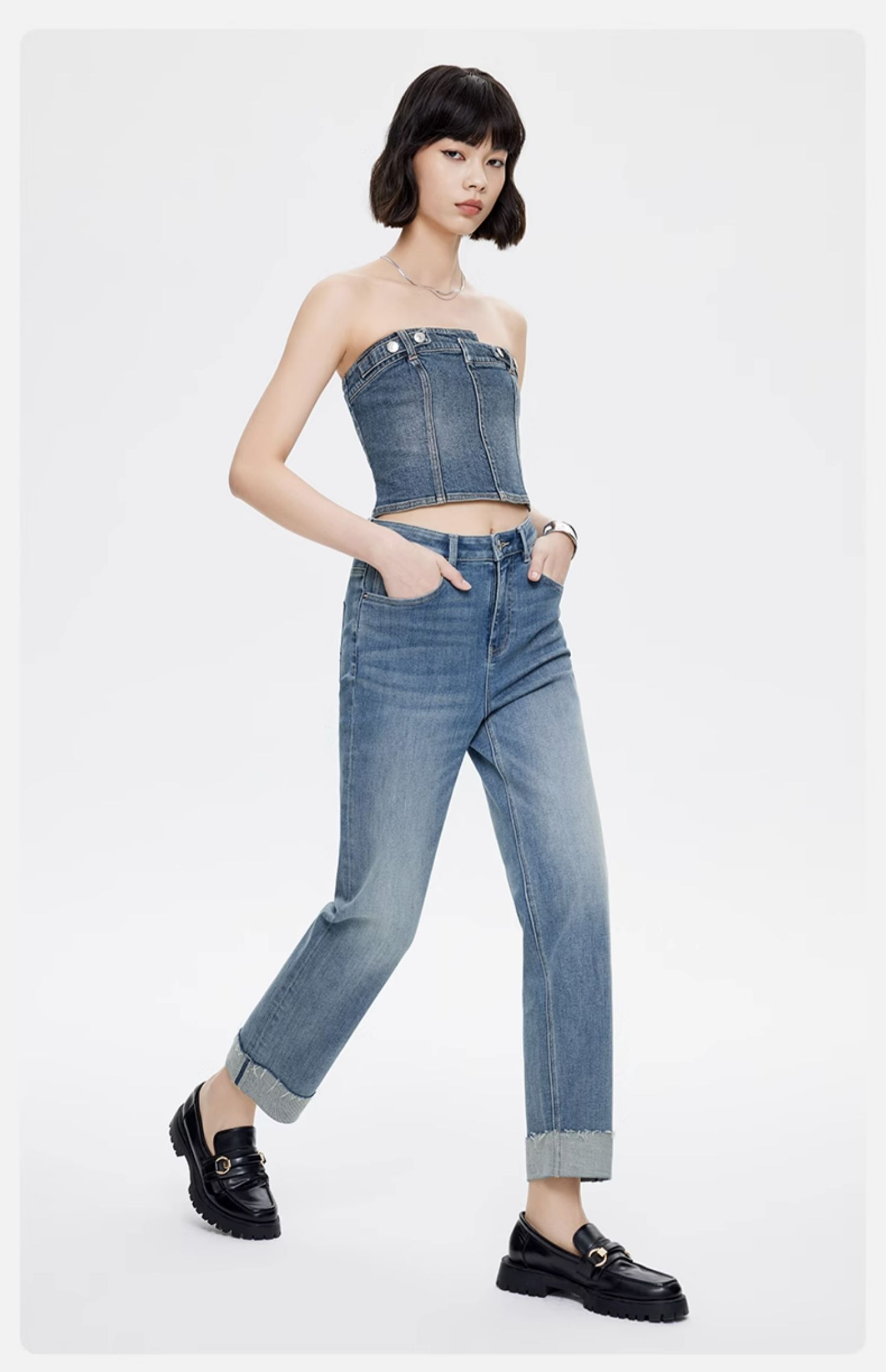 【原色蛋卷裤】simplepieces秋款SPS牛仔女小个子翻边九分直筒裤