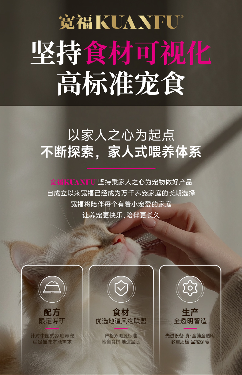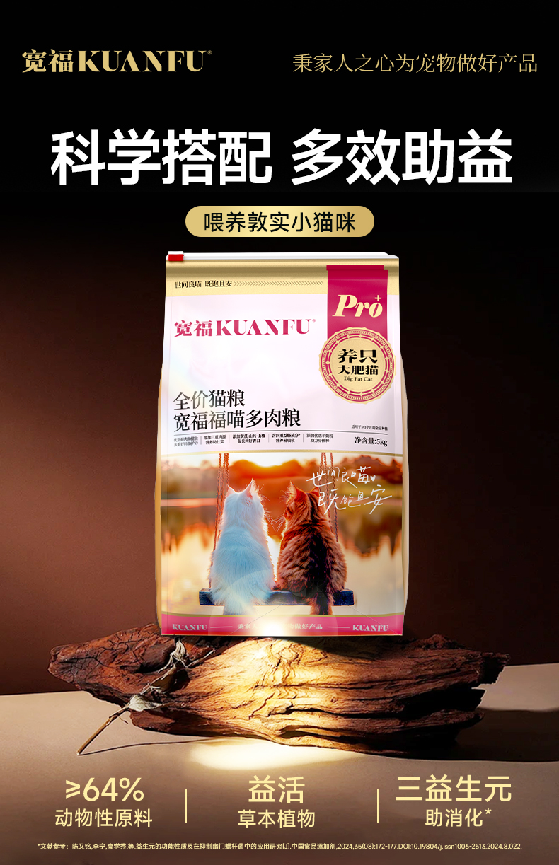 【福喵多肉粮】宽福 高鲜肉猫粮 三重肉源助长肉 三重珍选草本助益提高免疫 添加乳铁蛋白 三重益生元助益肠道吸收
