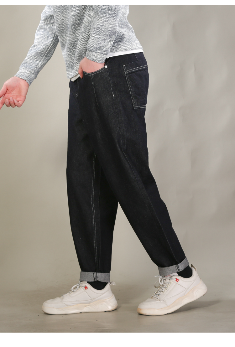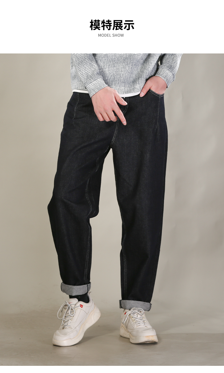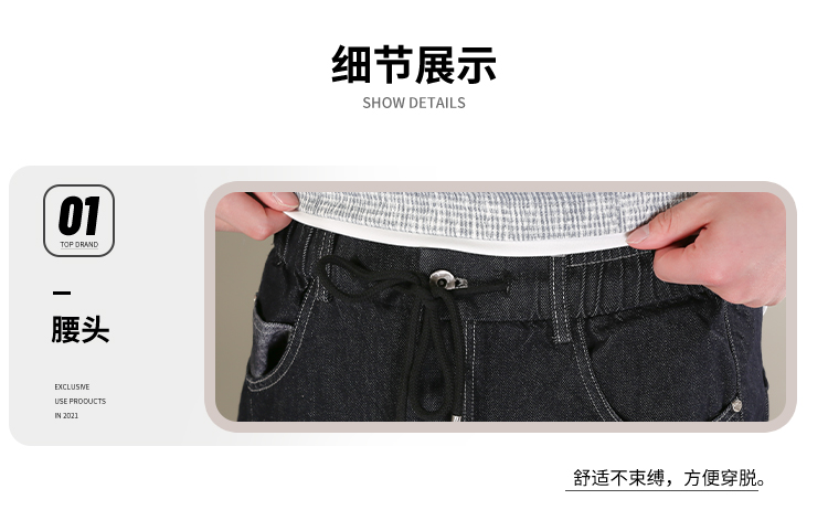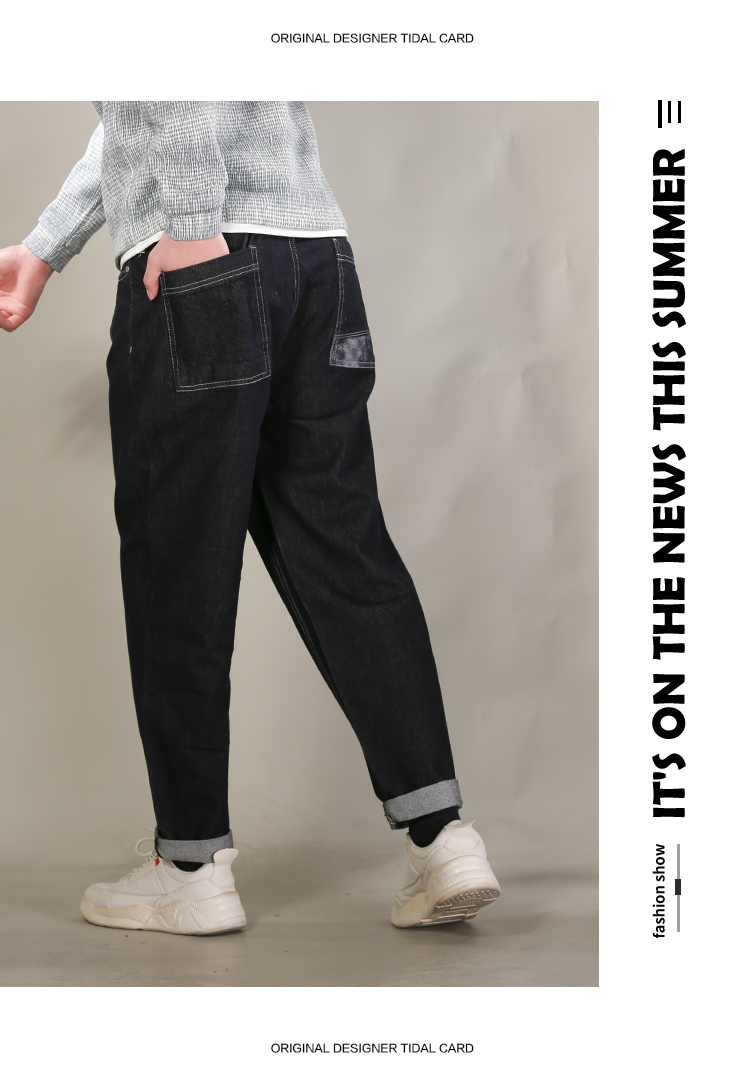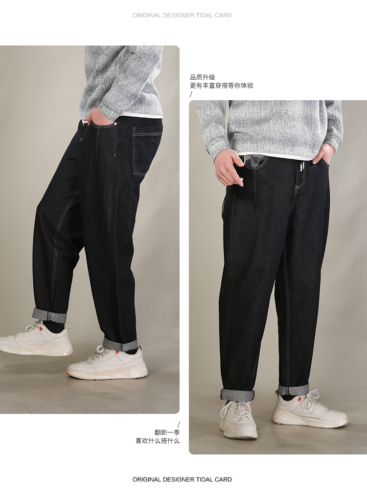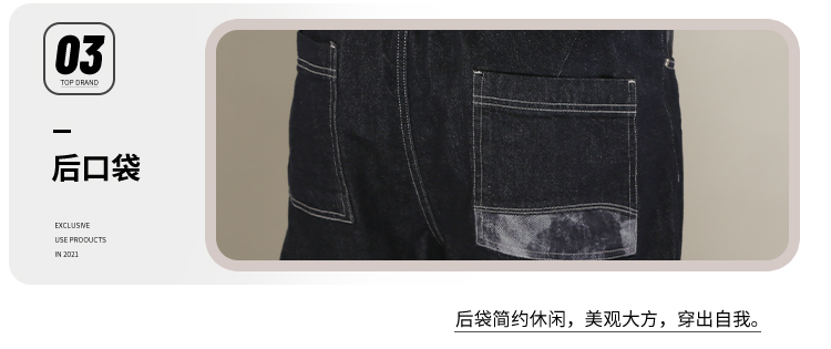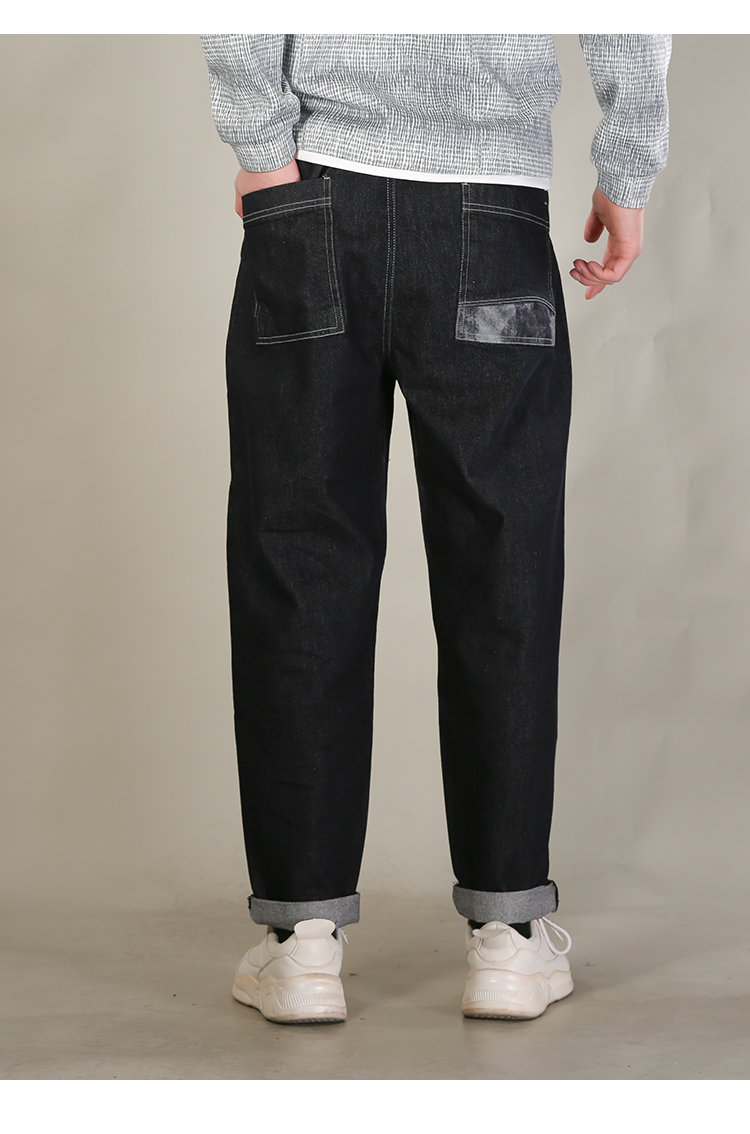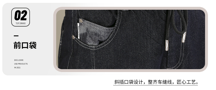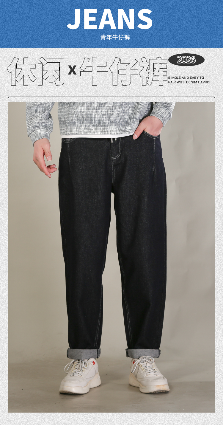 DRONKOO 2026 抽绳松紧腰表袋后口袋贴花色布中厚牛仔长裤