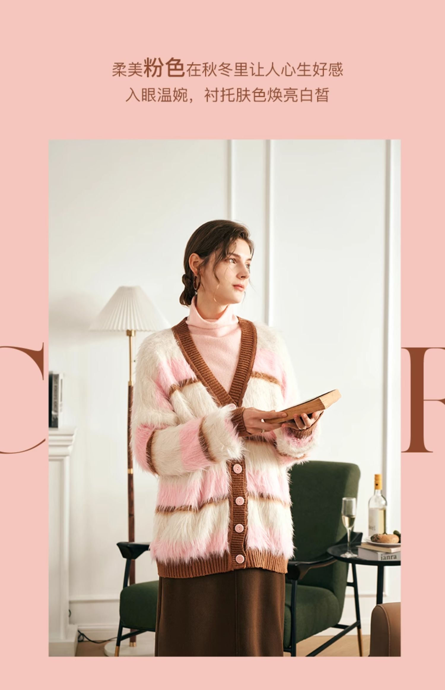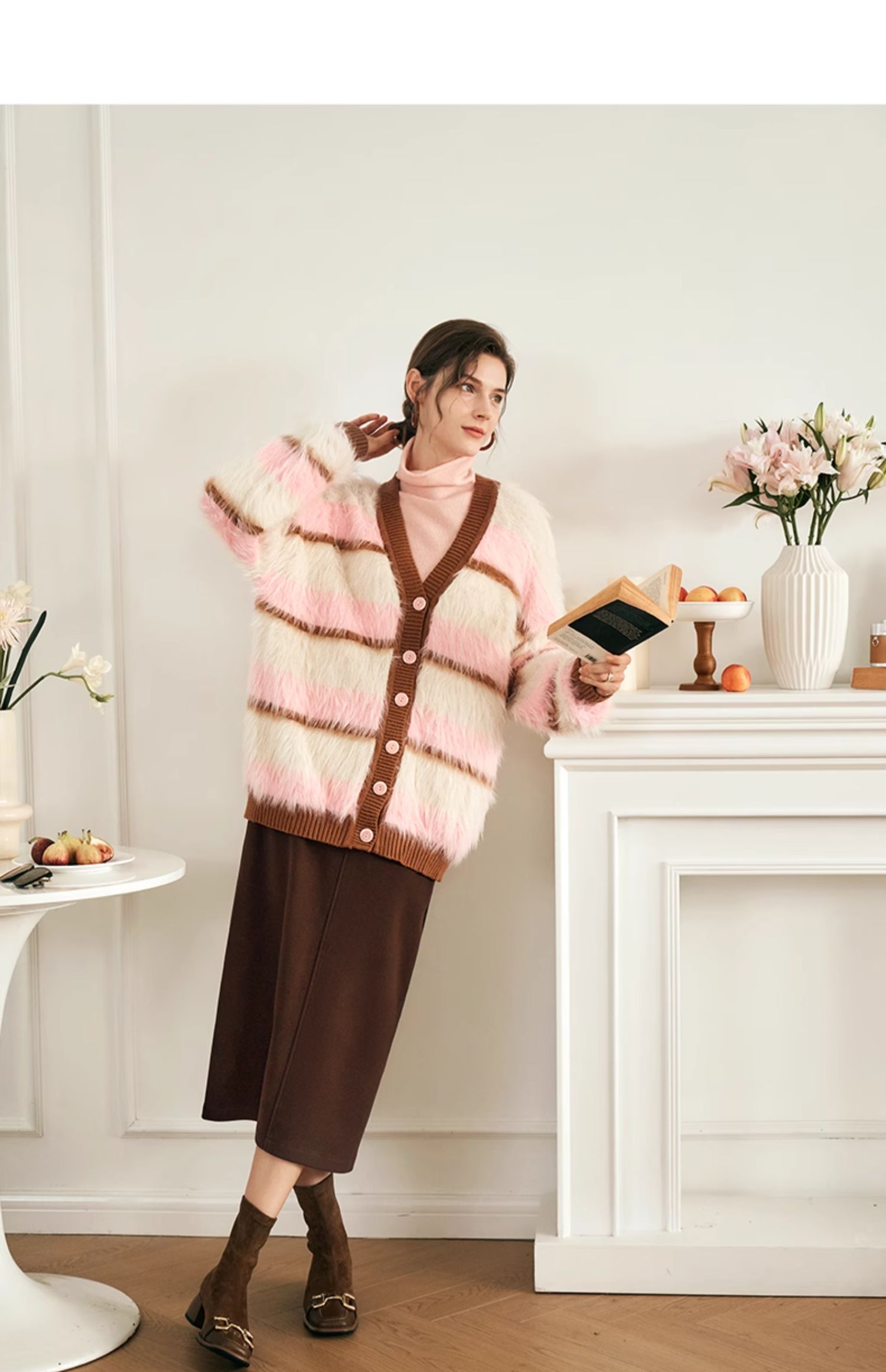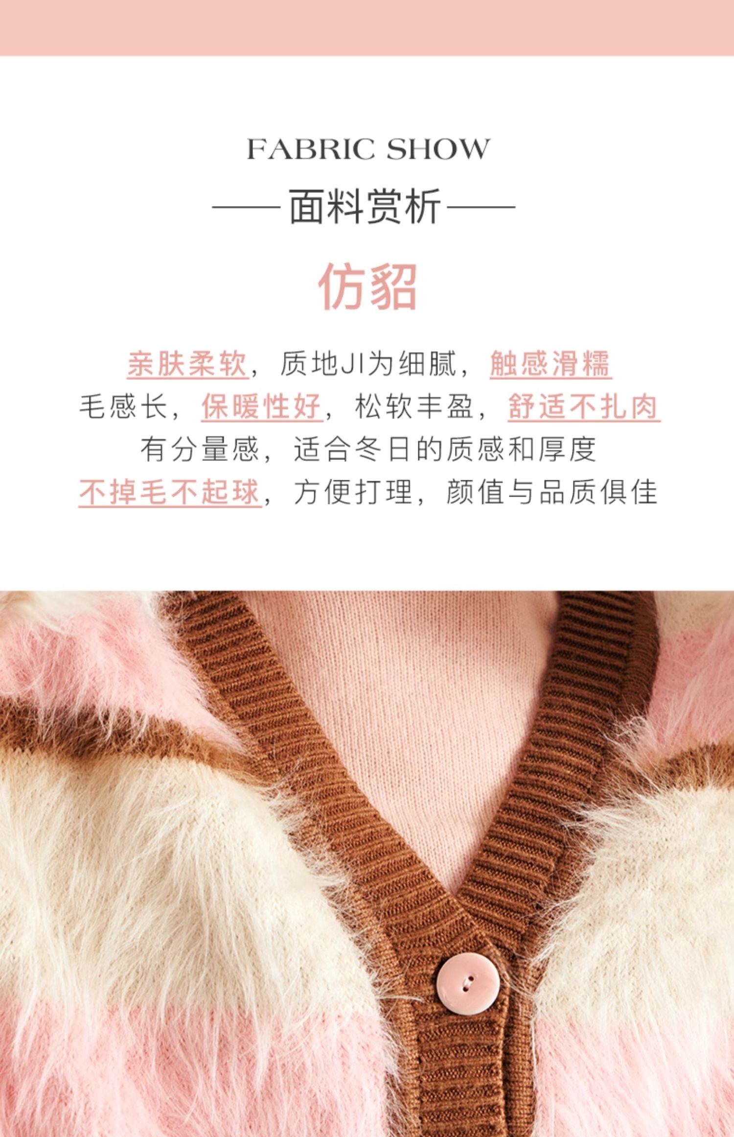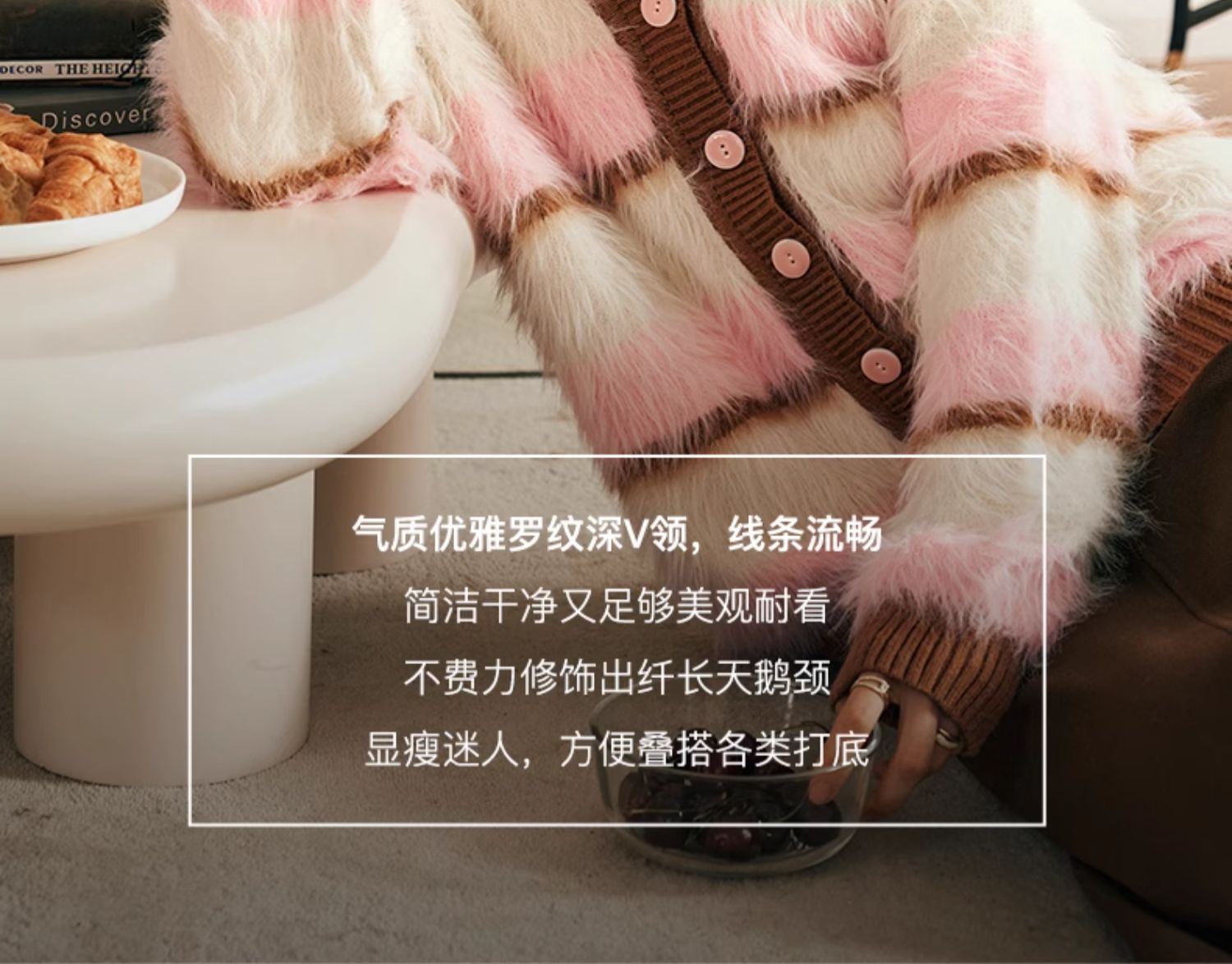 OLrain欧芮儿条纹开衫毛衣女冬季2025年新款复古v领撞色针织衫