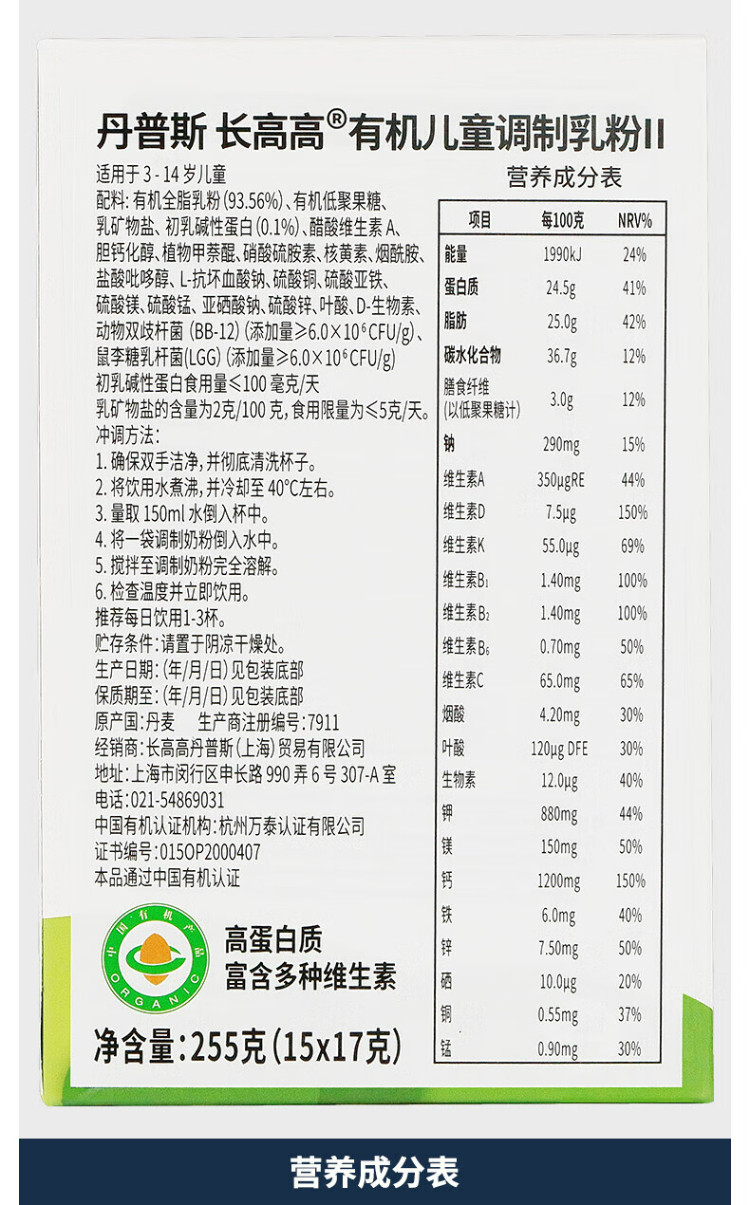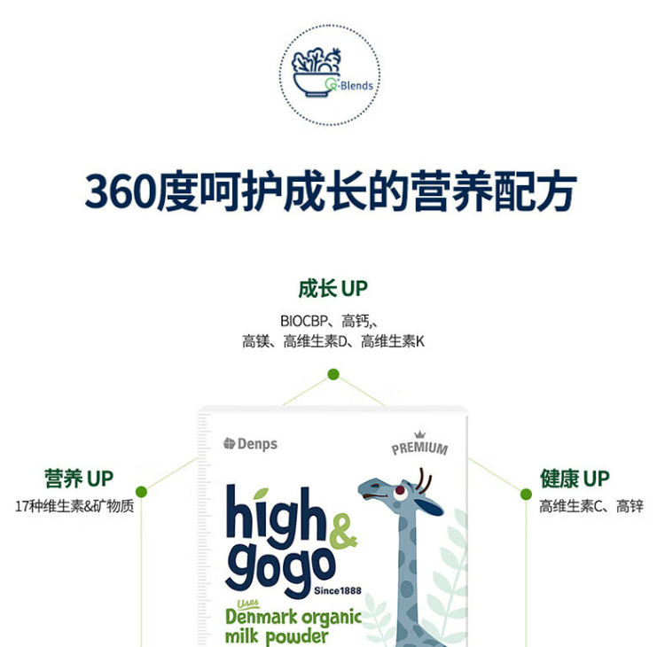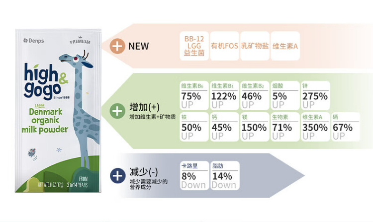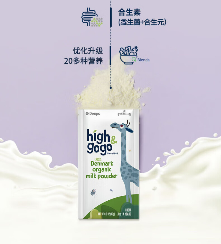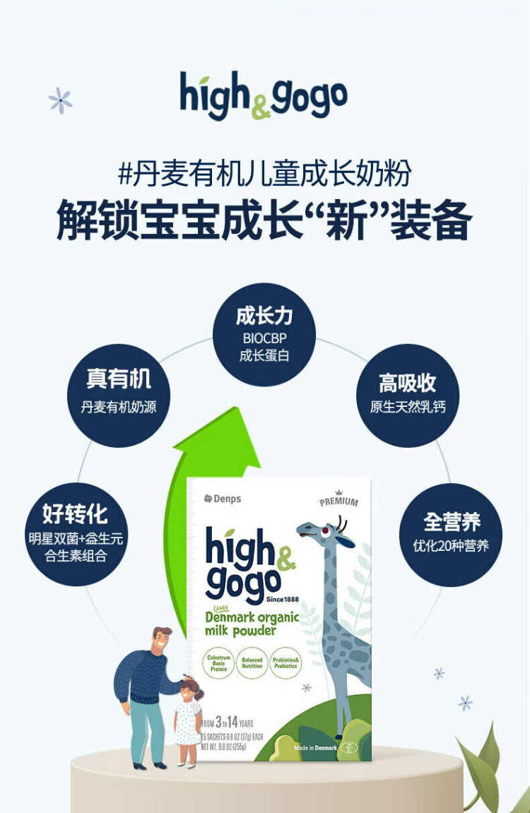 丹麦Denps high&gogo长高高有机儿童调制乳粉 3-14岁 255g