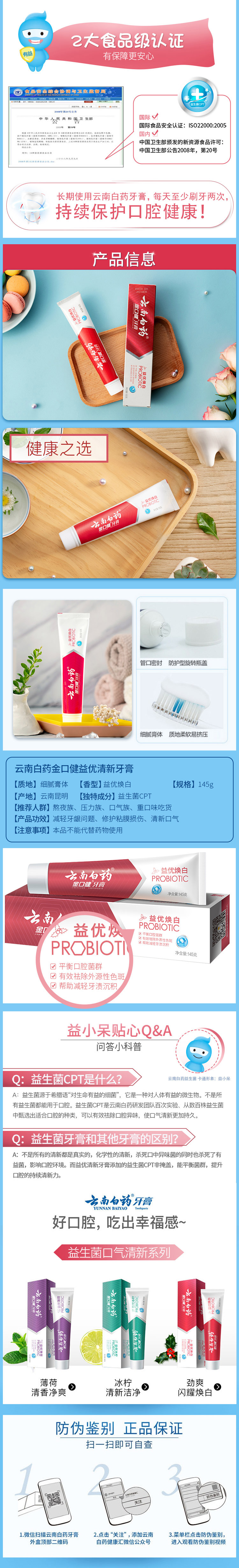 云南白药 金口健 牙膏 145g (益优焕白)(新老包装随机发货)