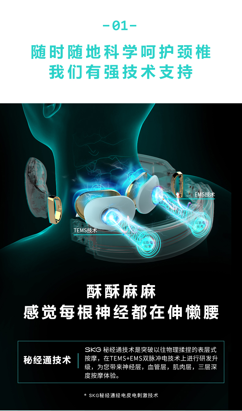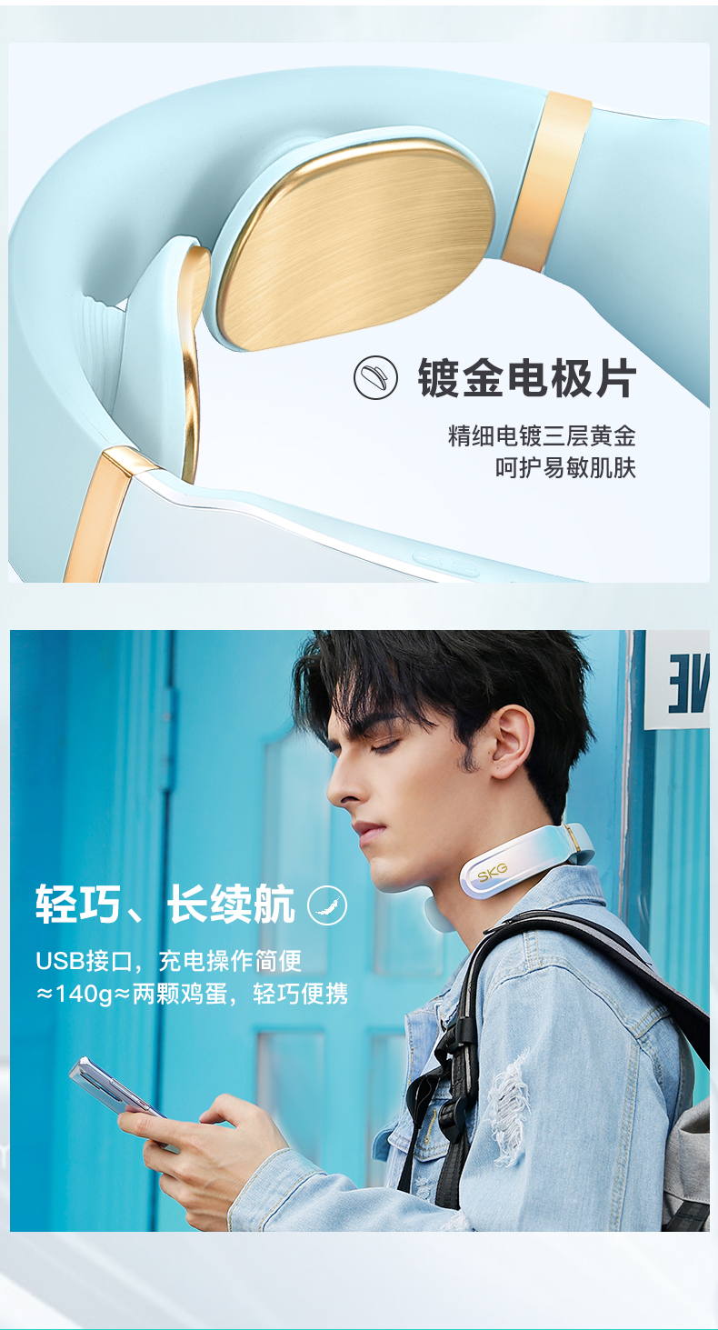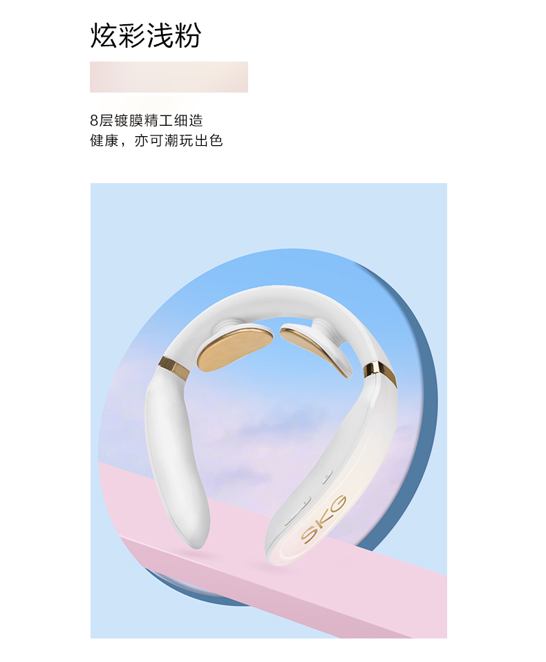 SKG 颈椎按摩器 颈椎按摩仪 肩颈按摩器 颈椎经络电脉冲护颈仪 蓝牙控制款 K6晨曦白