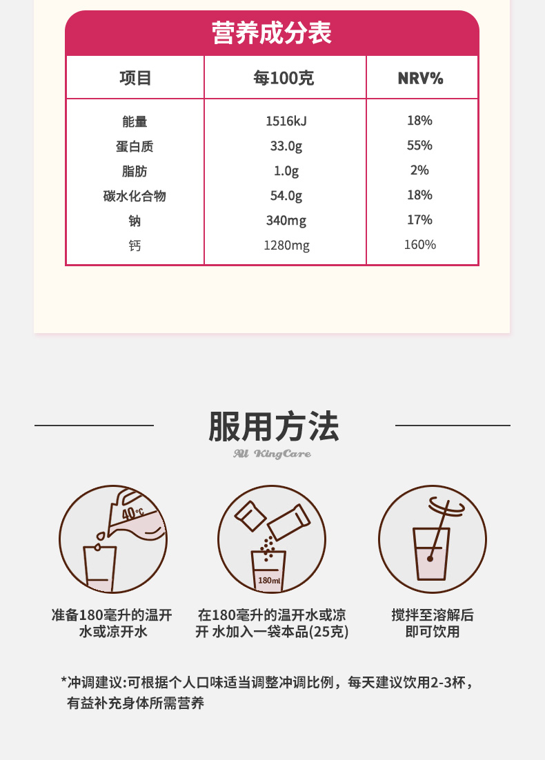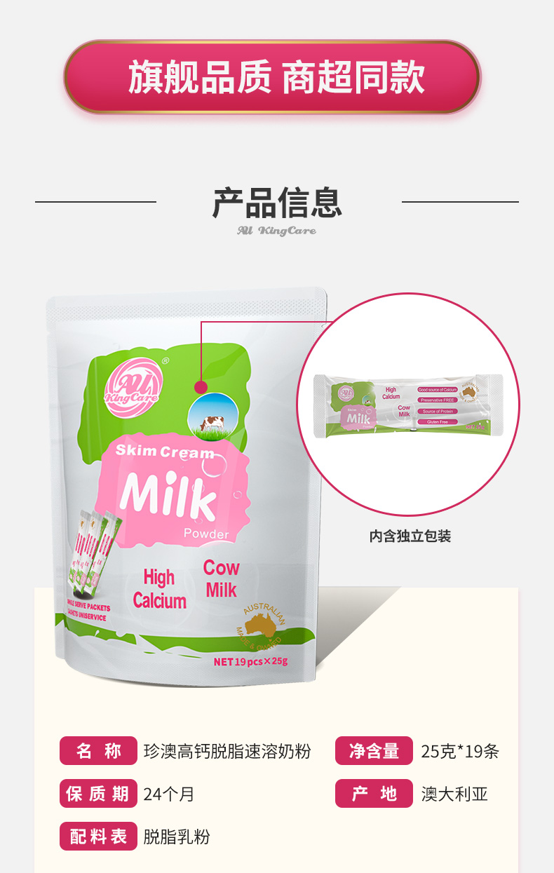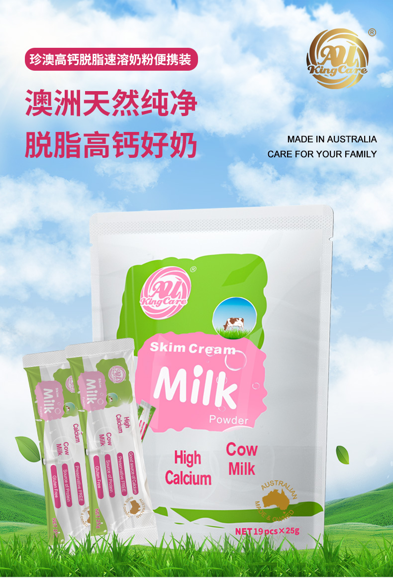 Au Kingcare 珍澳高钙脱脂速溶奶粉便携装475G (19条*25G) 763