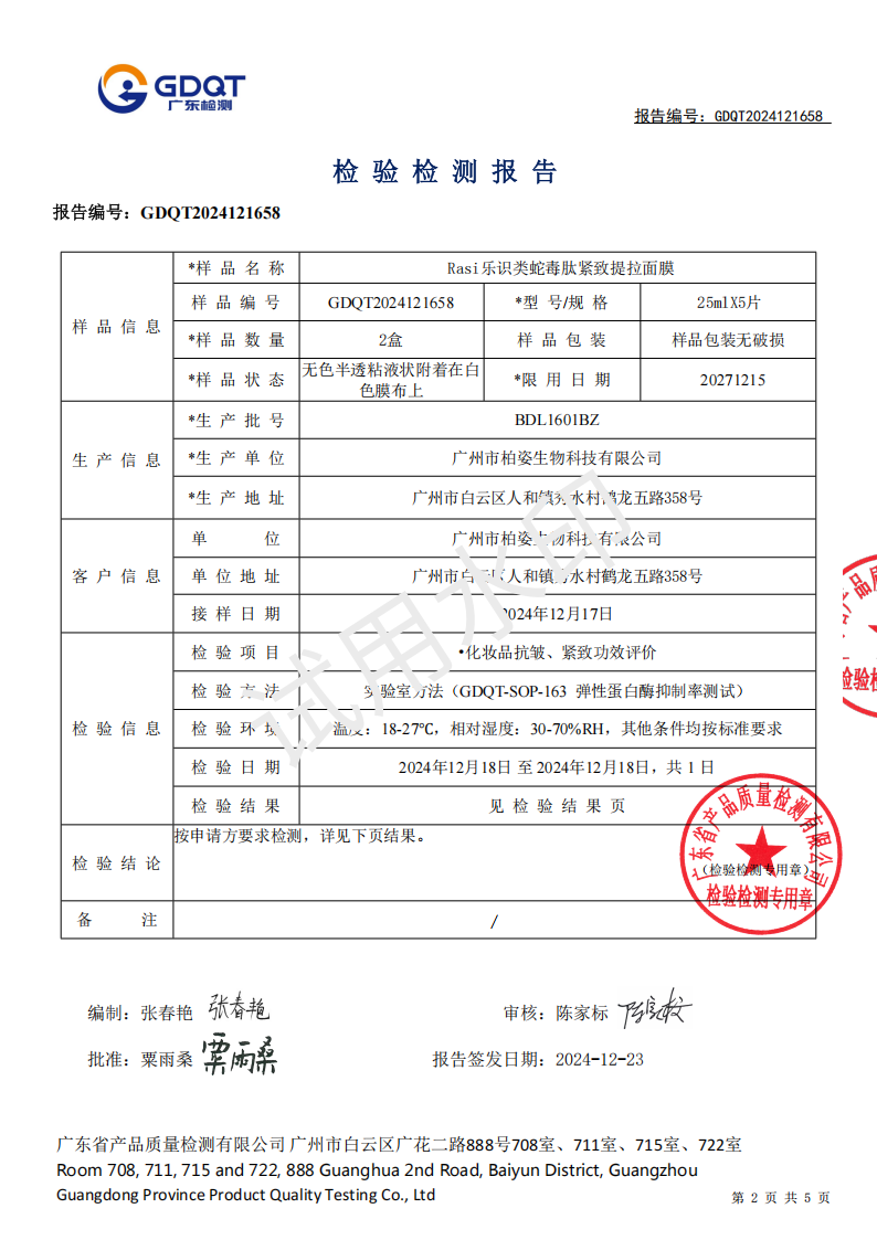 【云露专属】Rasi乐识类蛇毒肽紧致提拉面膜5片/盒