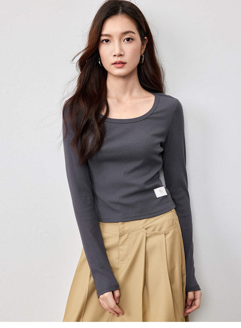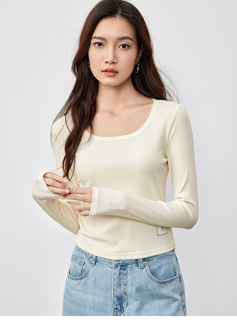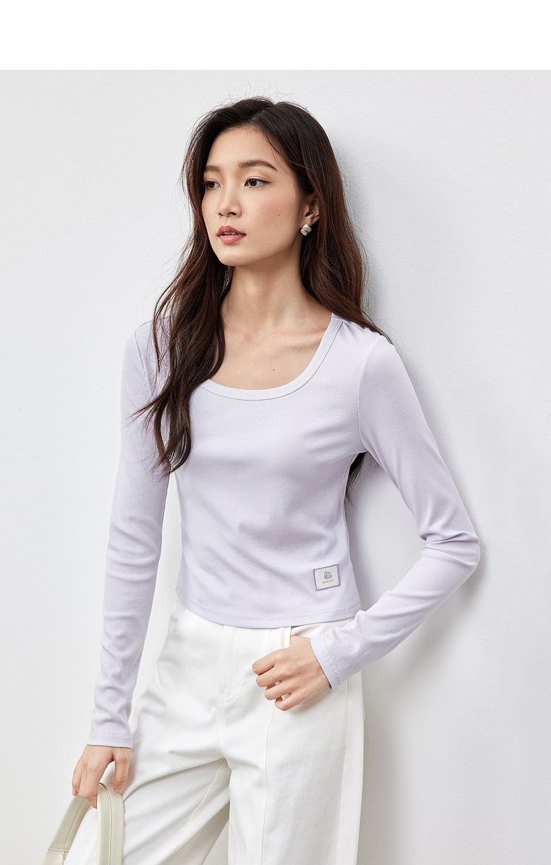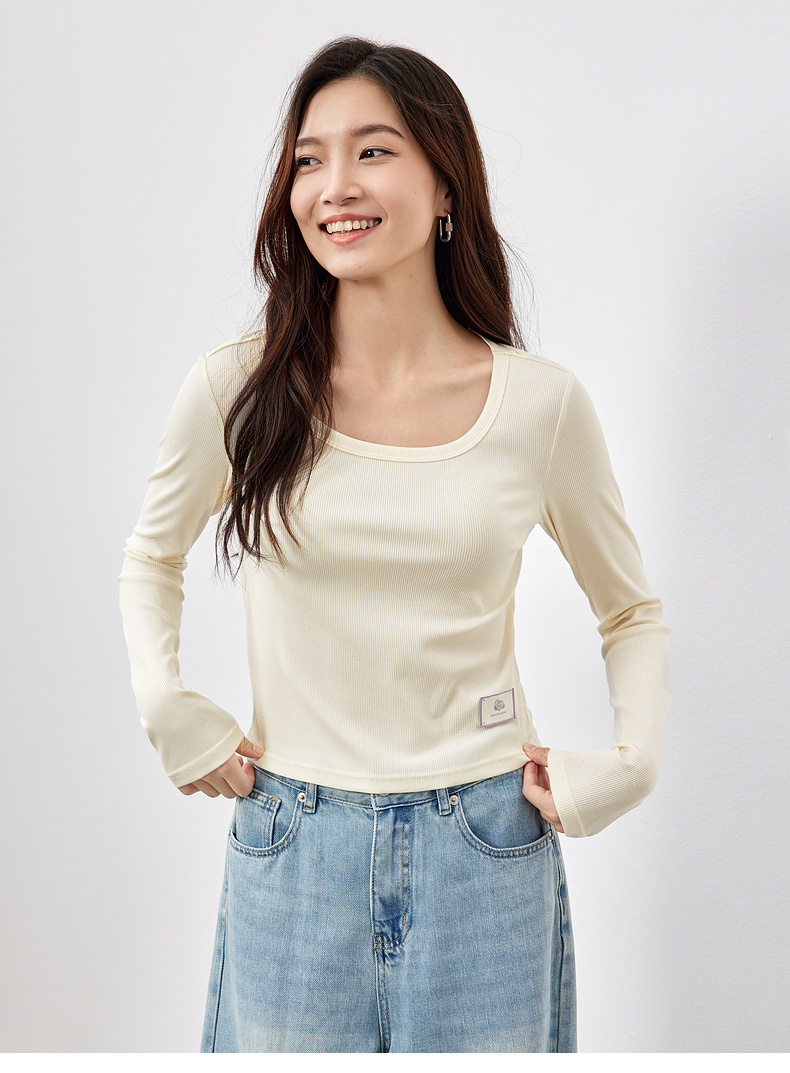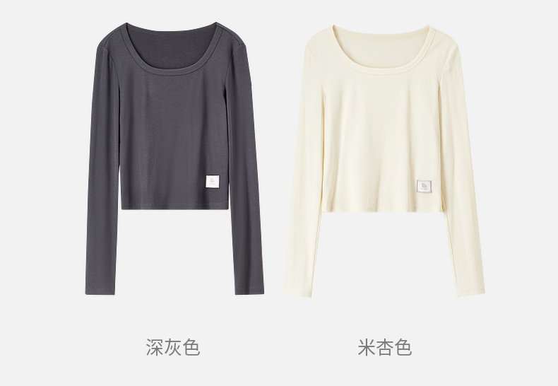 【内购】多色U领T恤基础百搭纯色短款大u形领修身打底长袖T恤-151T57514