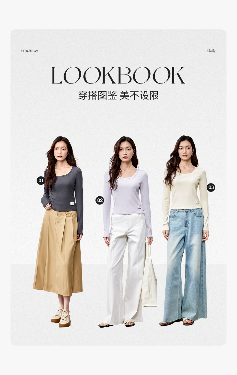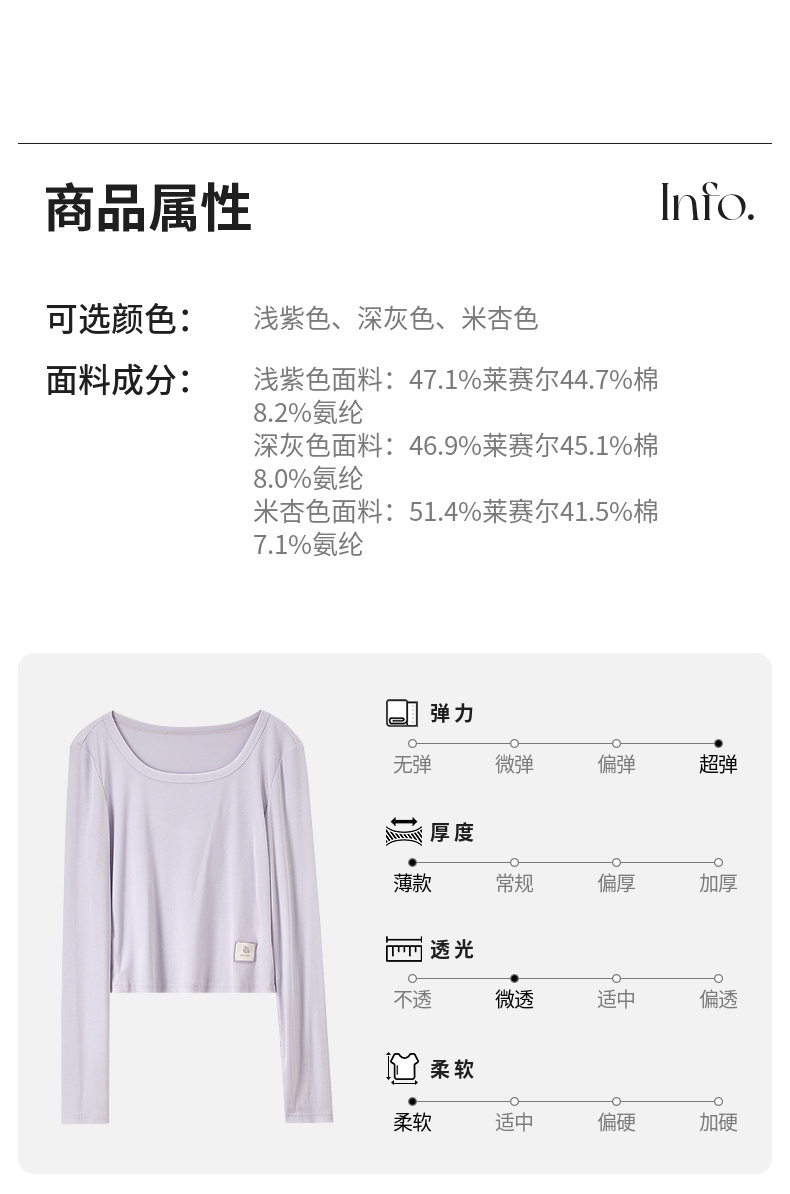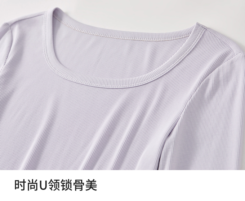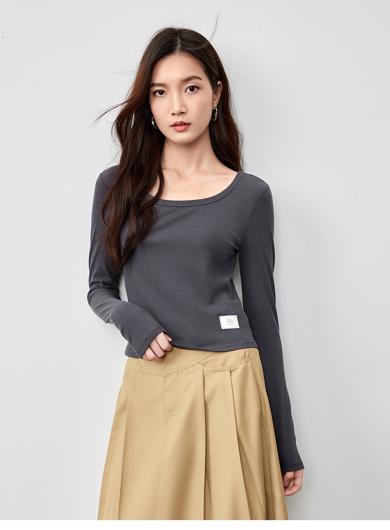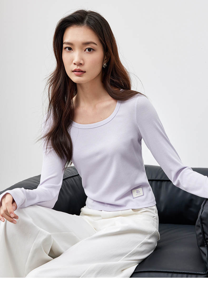 【内购】多色U领T恤基础百搭纯色短款大u形领修身打底长袖T恤-151T57514