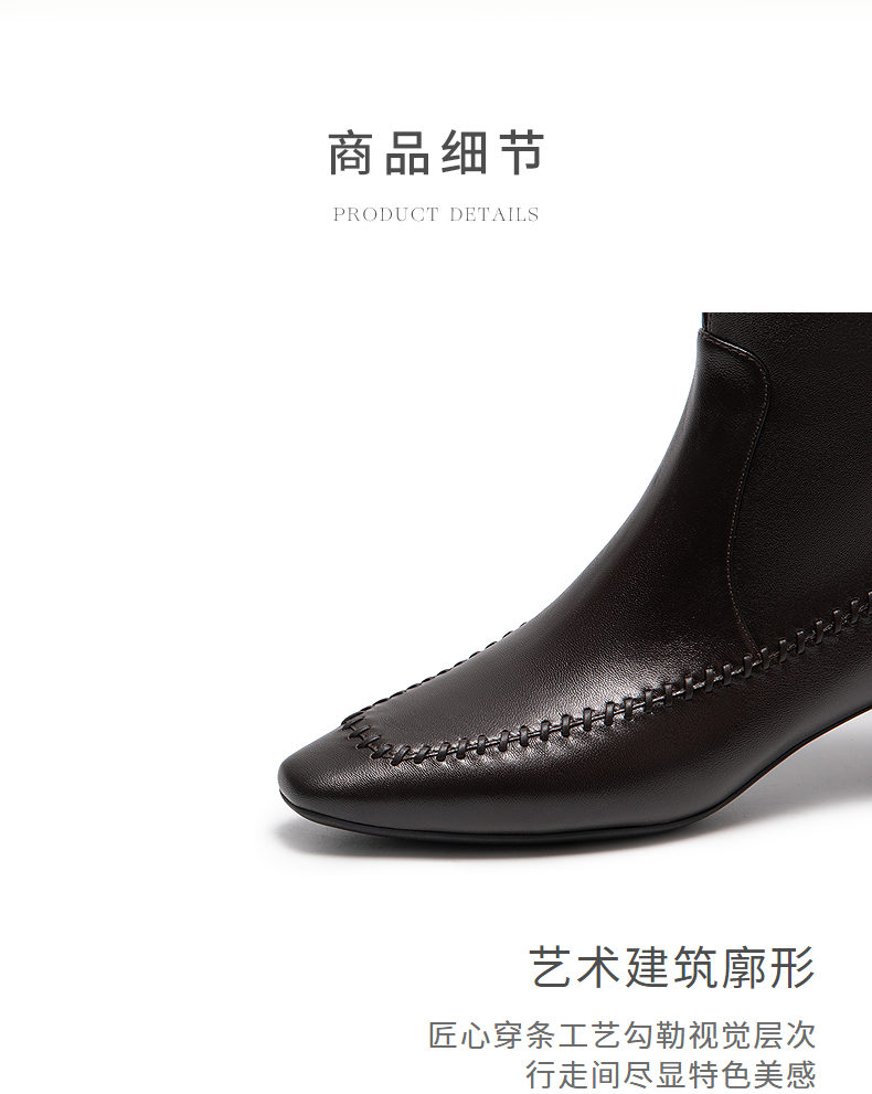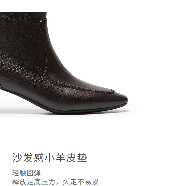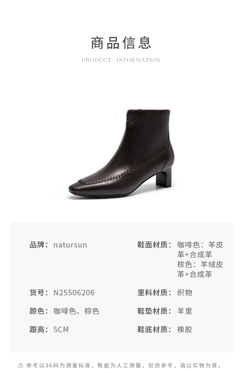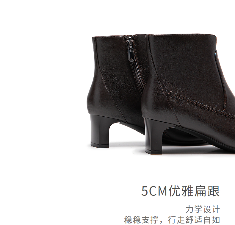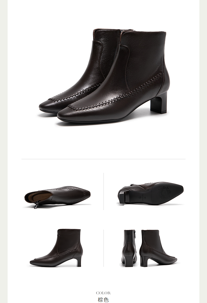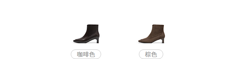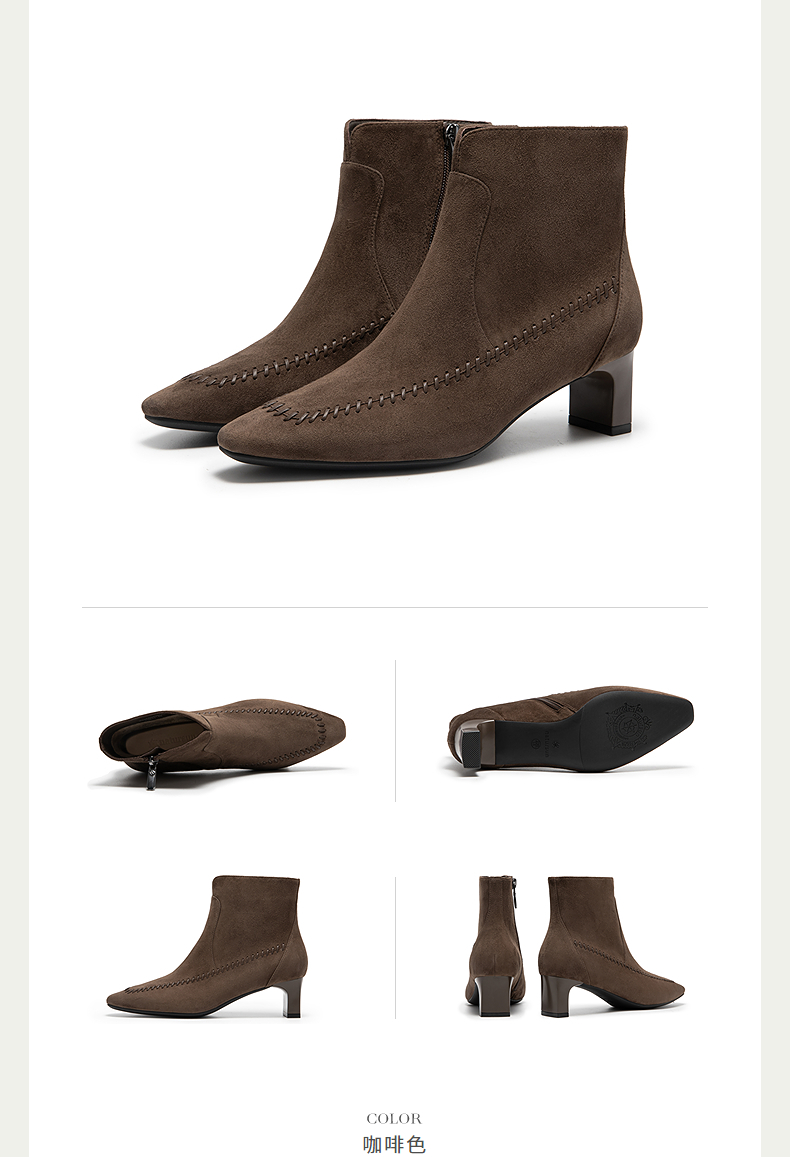 natursun英伦风时装靴粗跟尖头显瘦短靴复古气质靴子N25506206