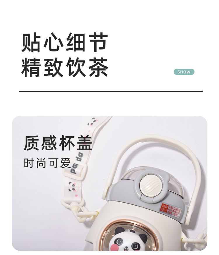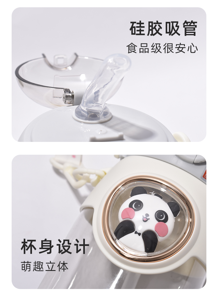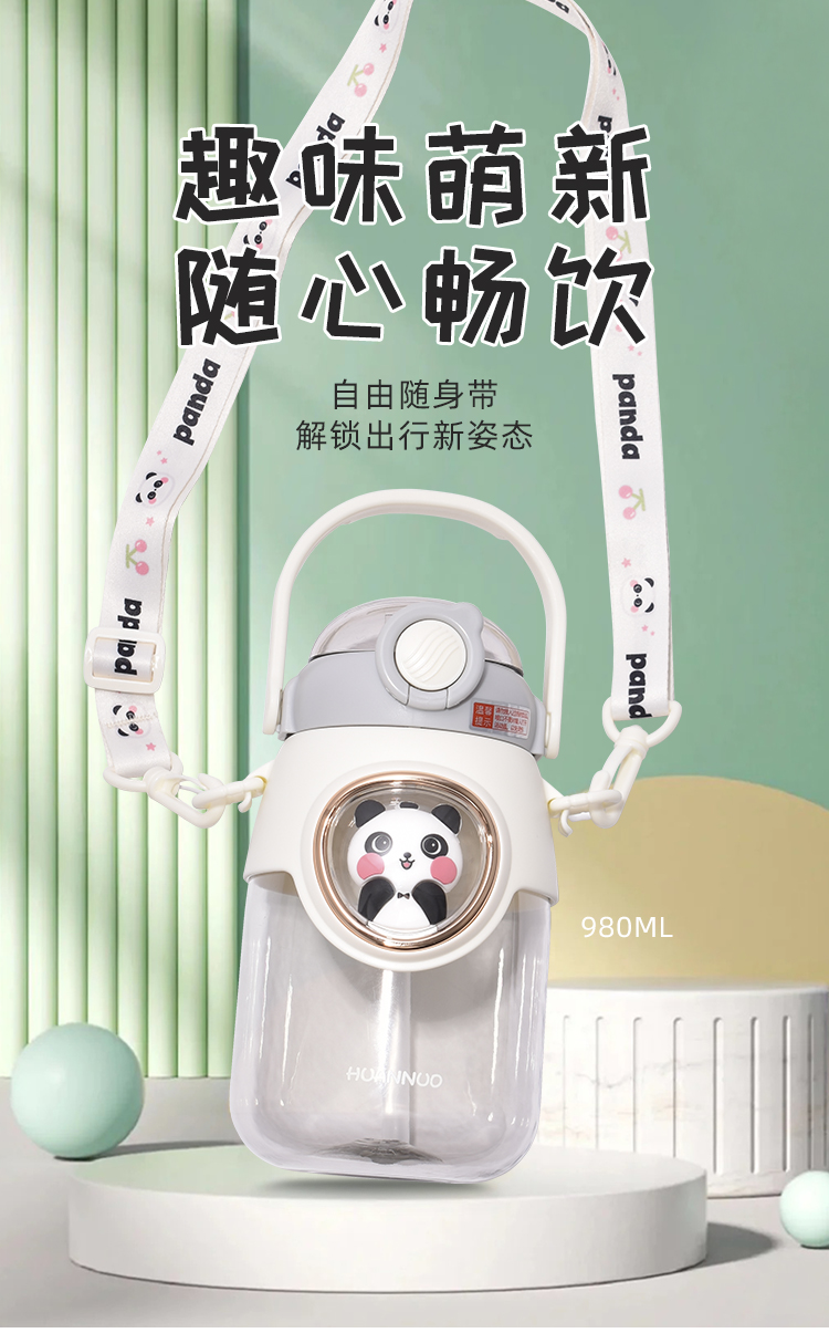 新品高颜值可爱女生水杯儿童带吸管塑料便携水壶夏天超萌学生杯子980mL YXRY60127