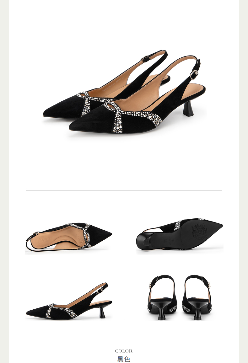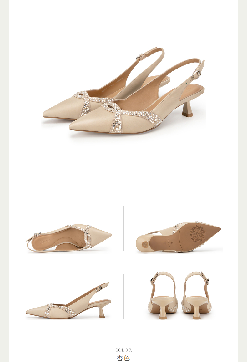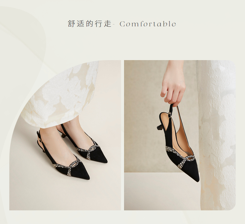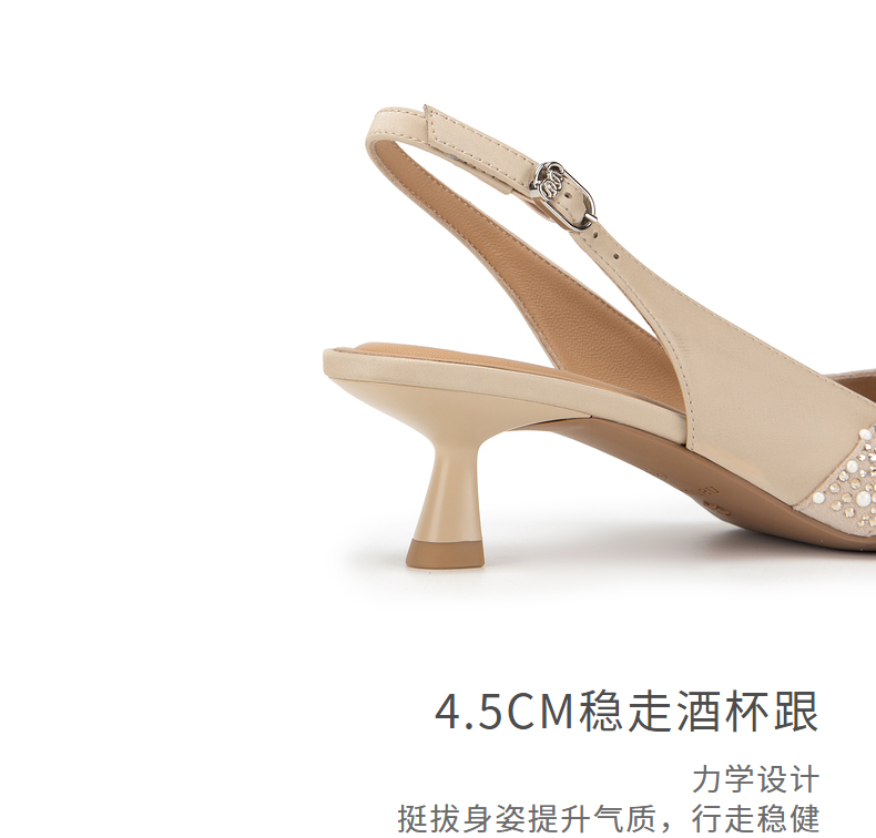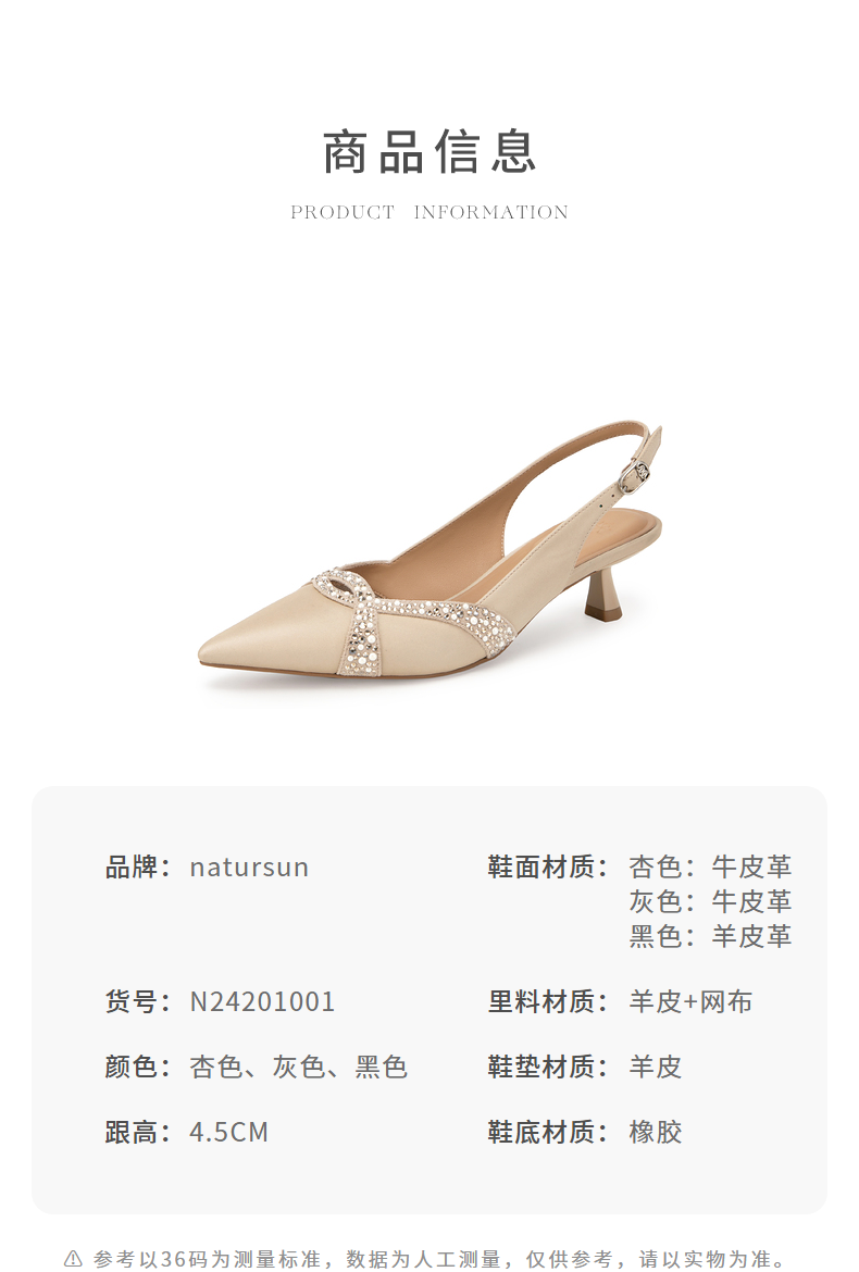 natursun耐冉女鞋凉鞋女款羊皮软底法式后空一字带高跟鞋N24201001