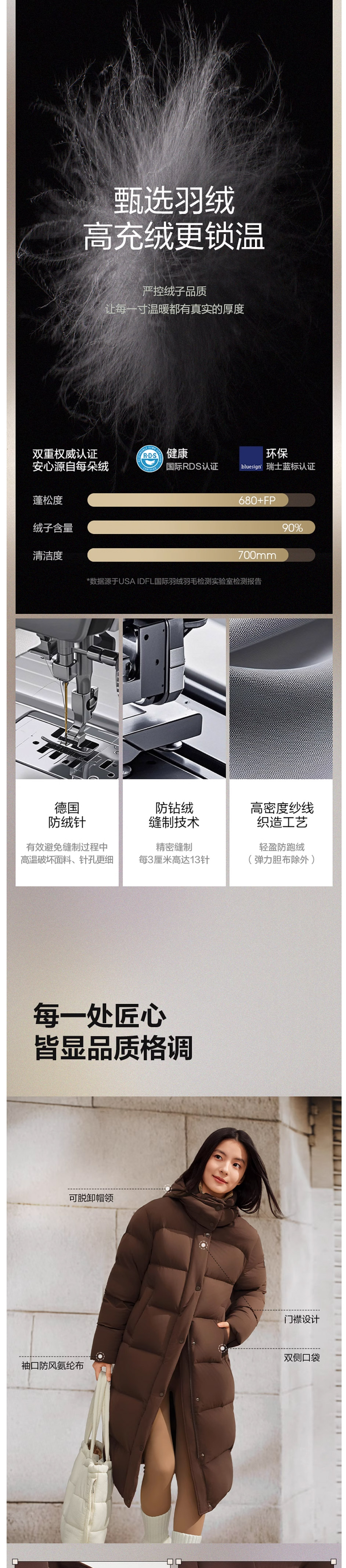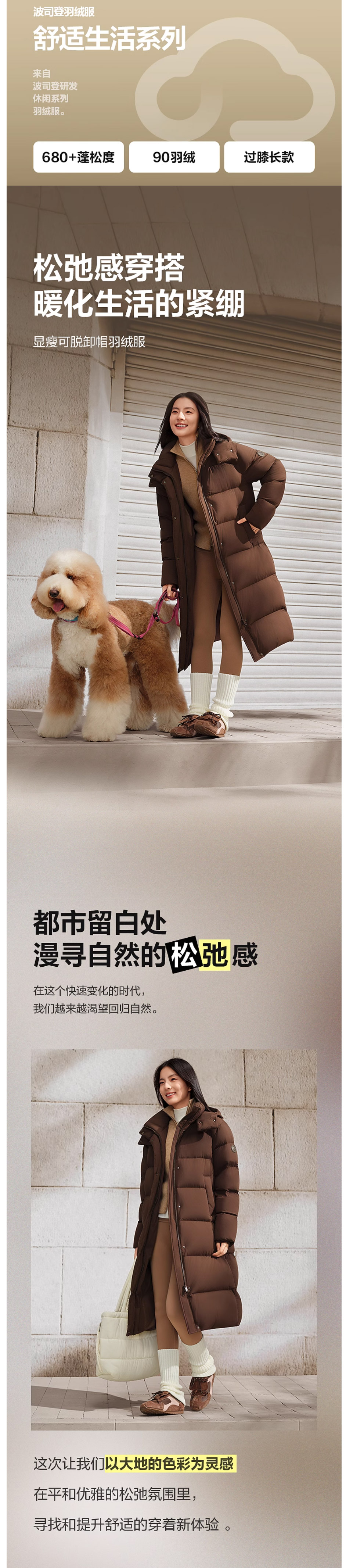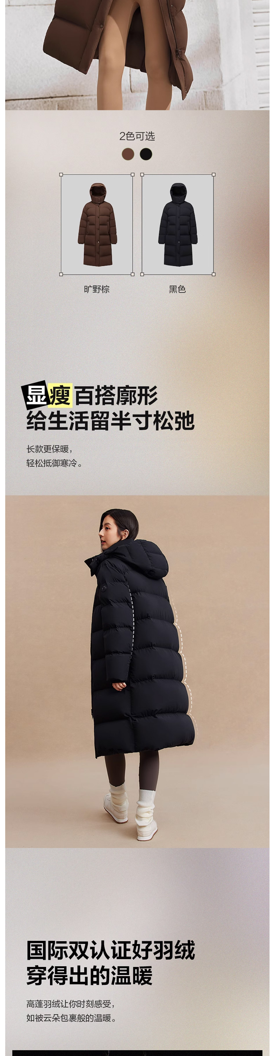 波司登羽绒服女士长款过膝连帽2025冬新款B250245298