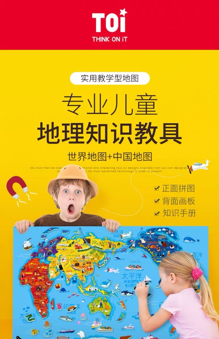 TOI木质磁性中国地图世界地图拼图儿童益智玩具女孩男孩画板