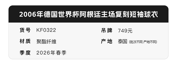 小李子ADIDAS阿迪达斯 2006年德国世界杯阿根廷主场复刻短袖球衣KF0322