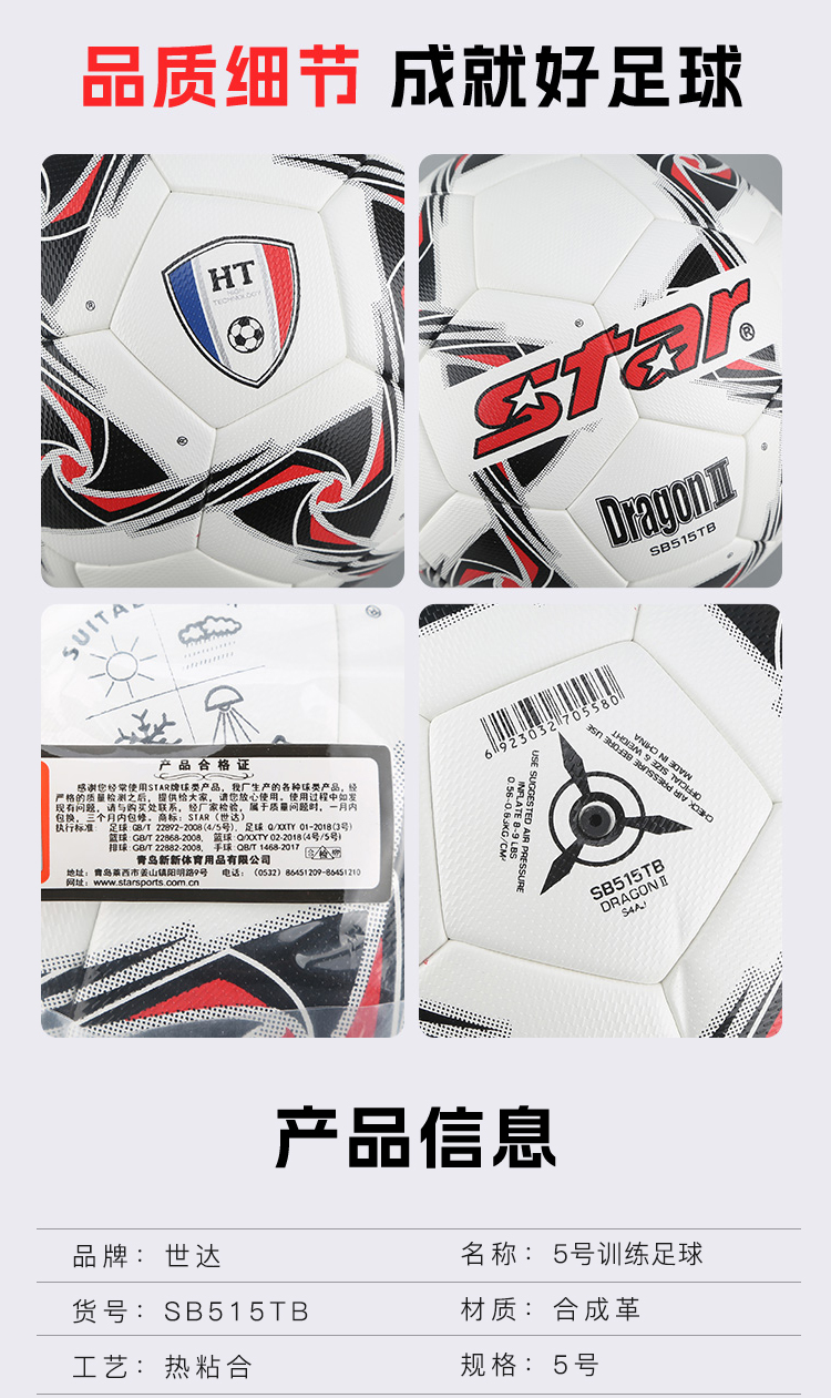 小李子STAR/世达比赛足球5号热粘合比赛训练足球SB515TB