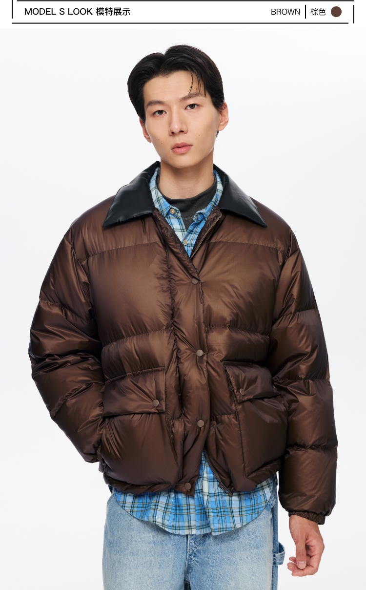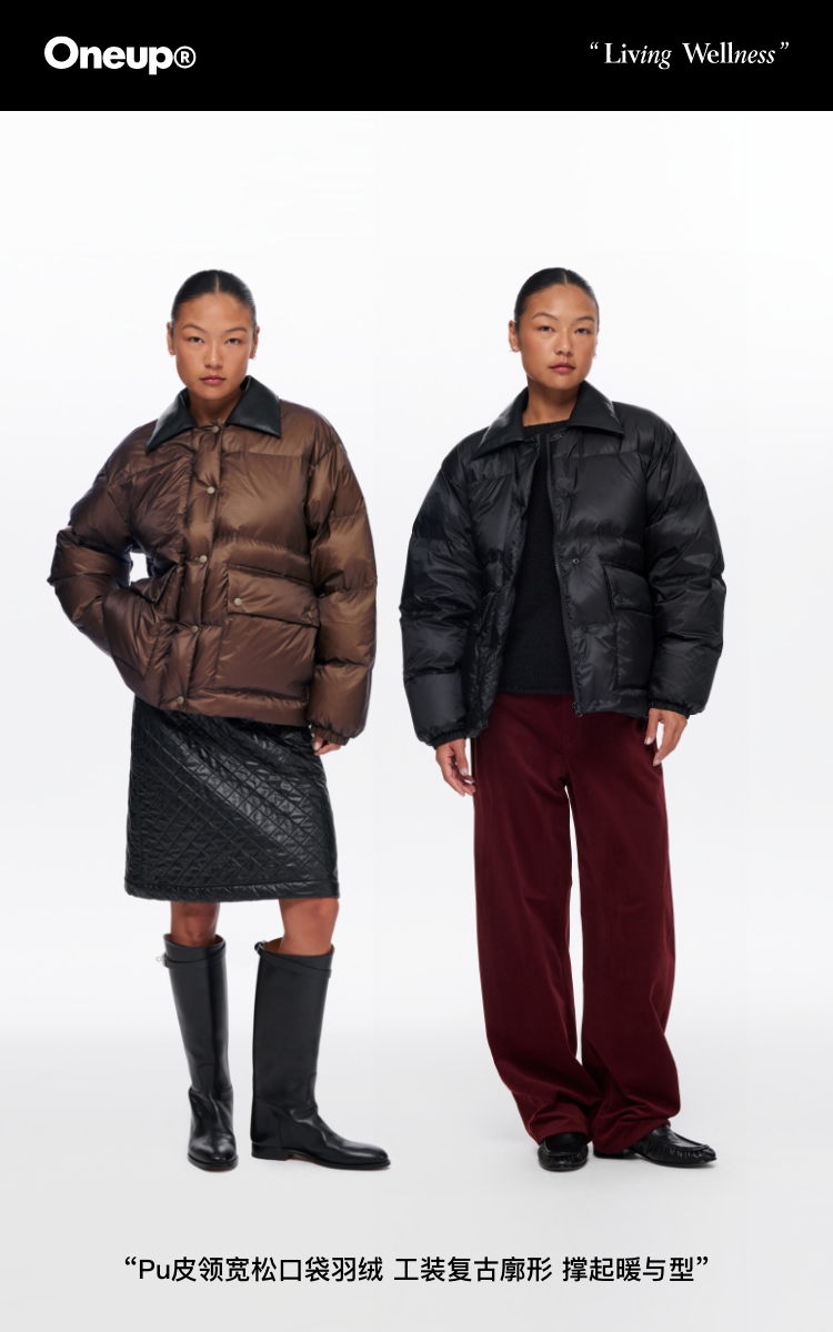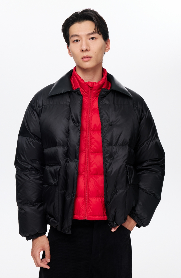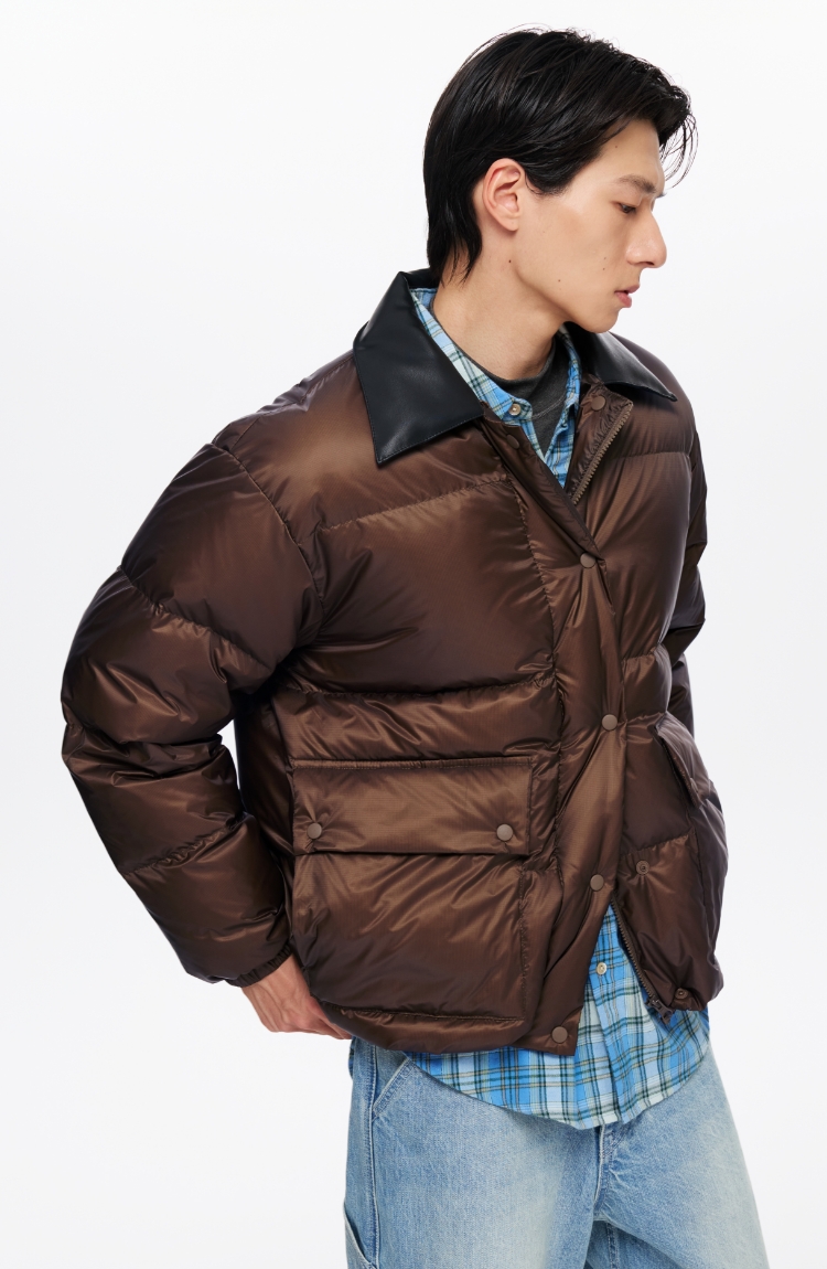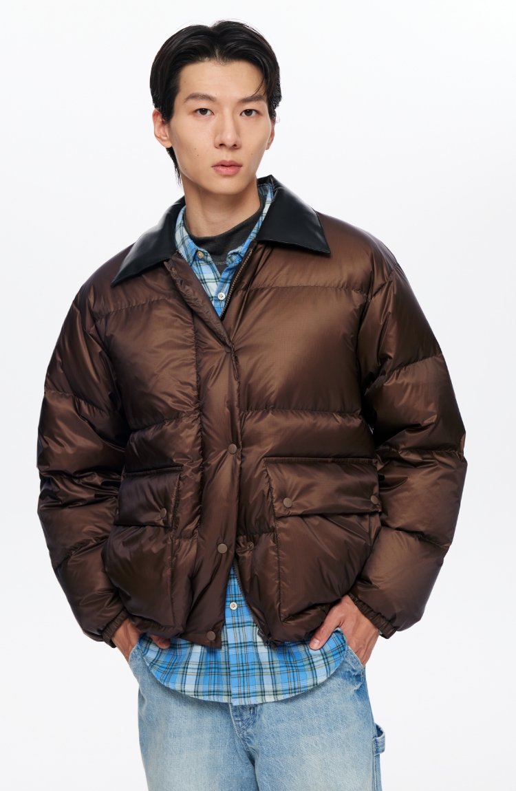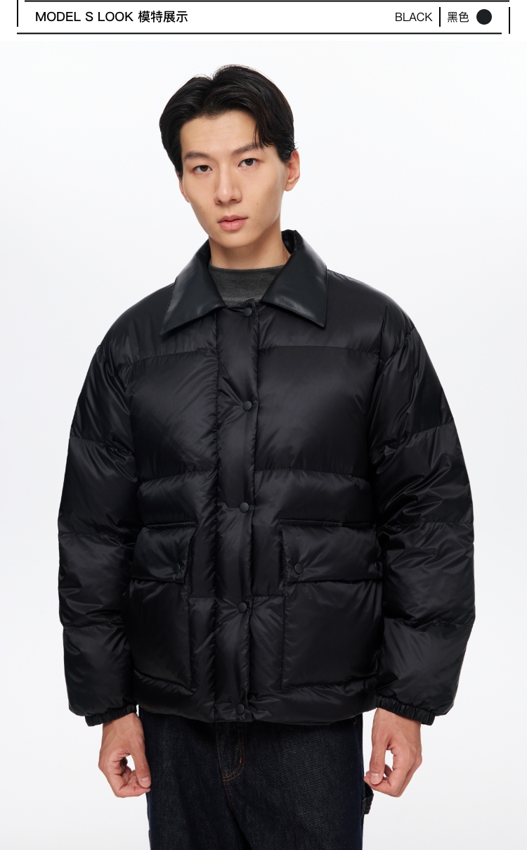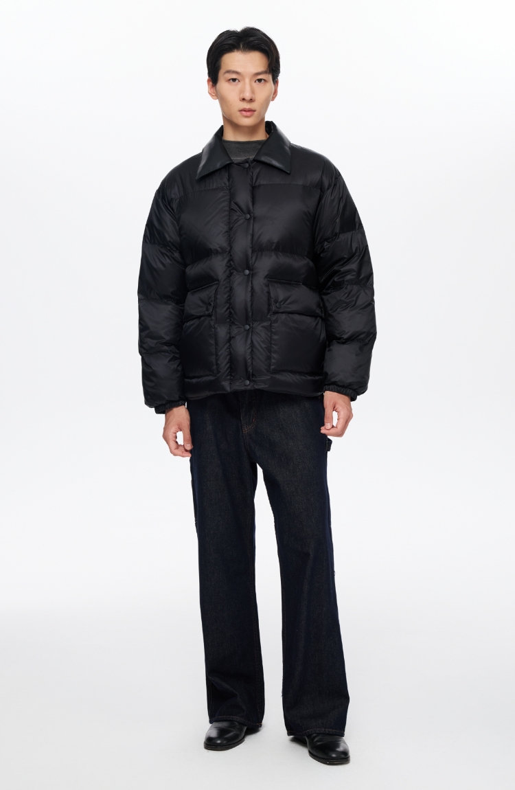 Oneup pu皮领宽松口袋羽绒(男女同款)