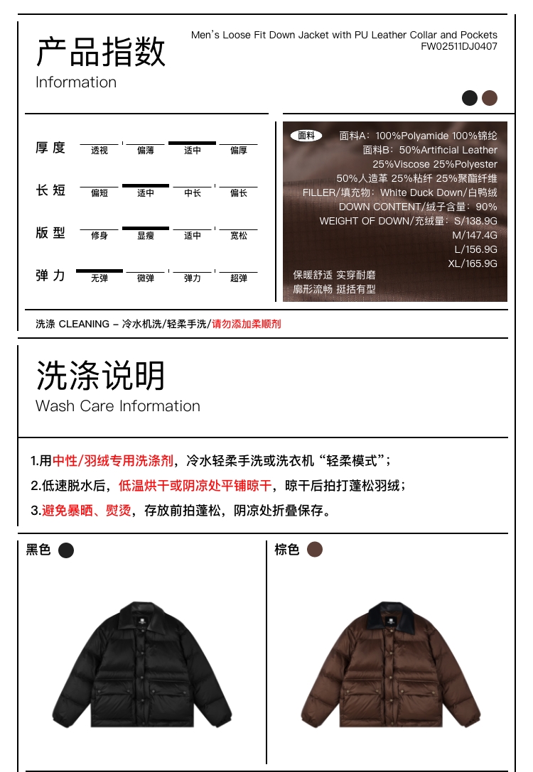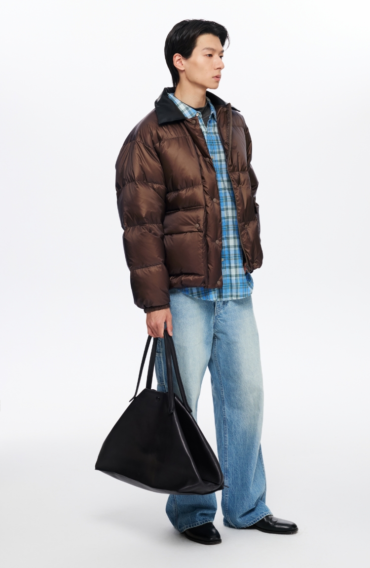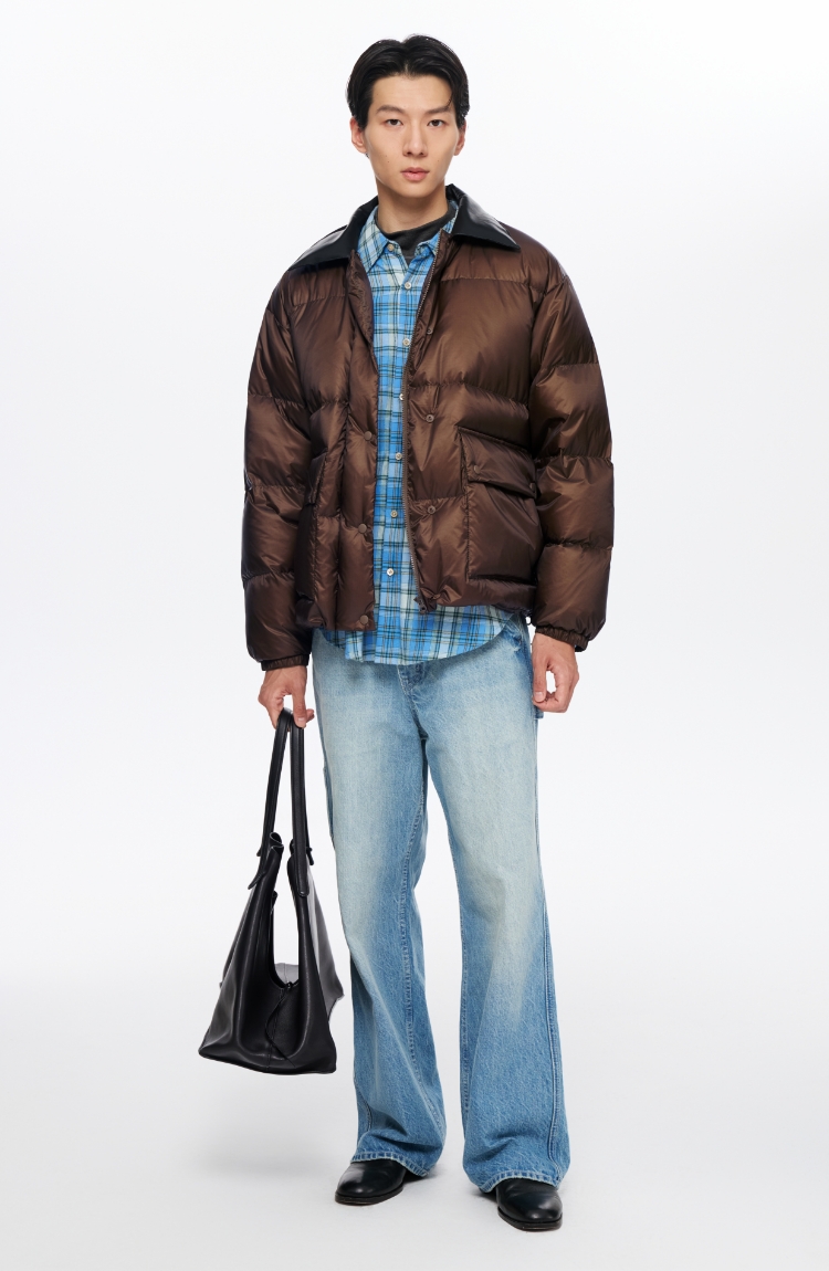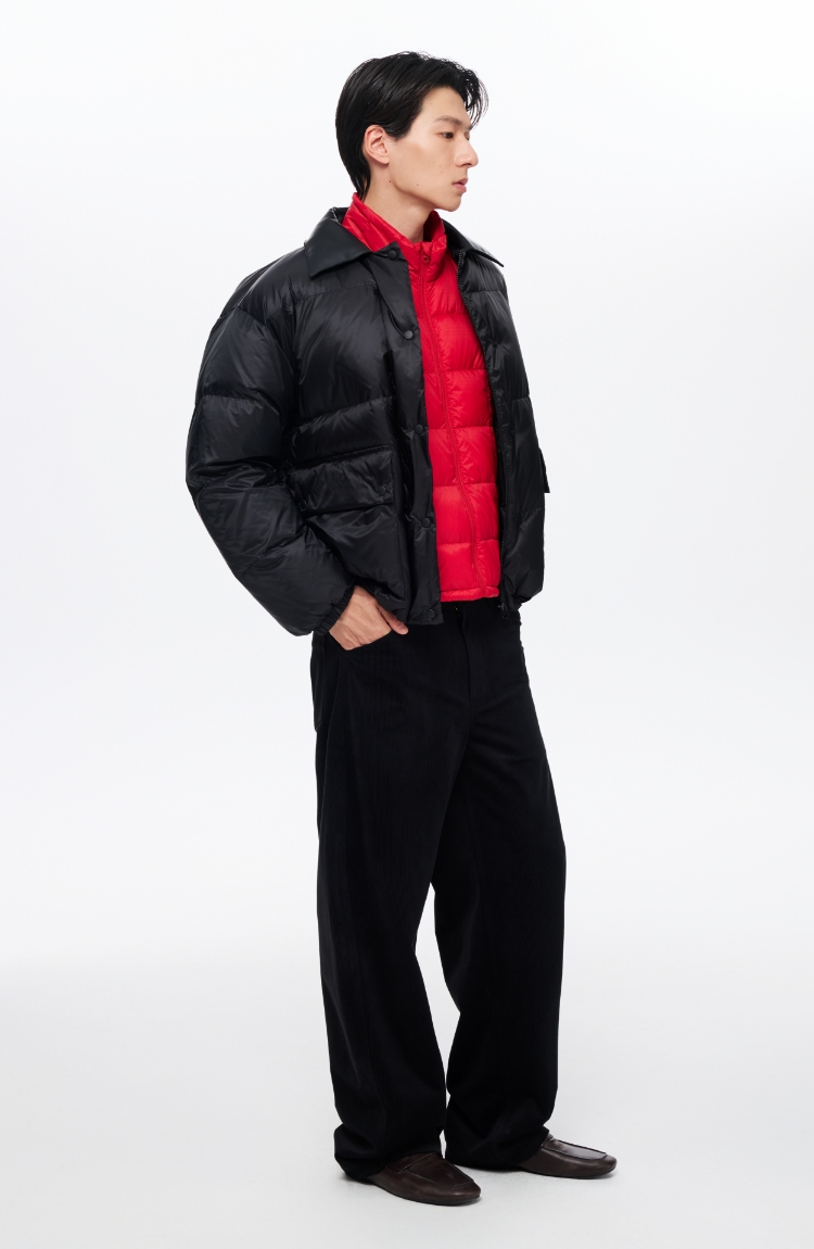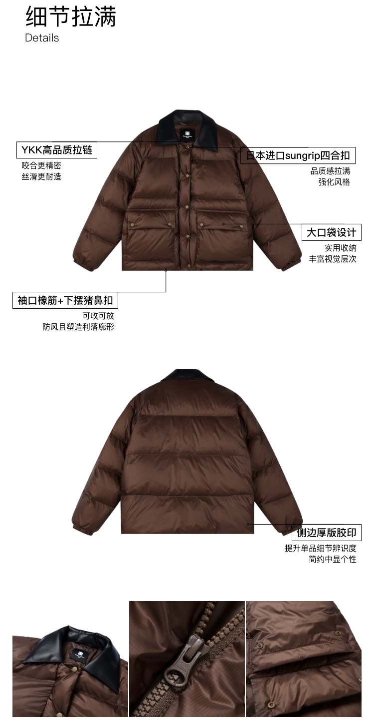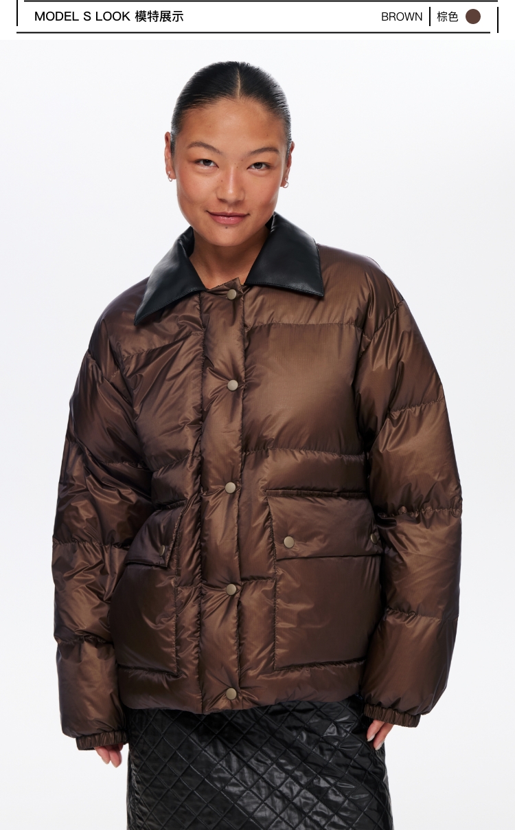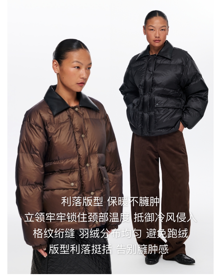 Oneup pu皮领宽松口袋羽绒(男女同款)