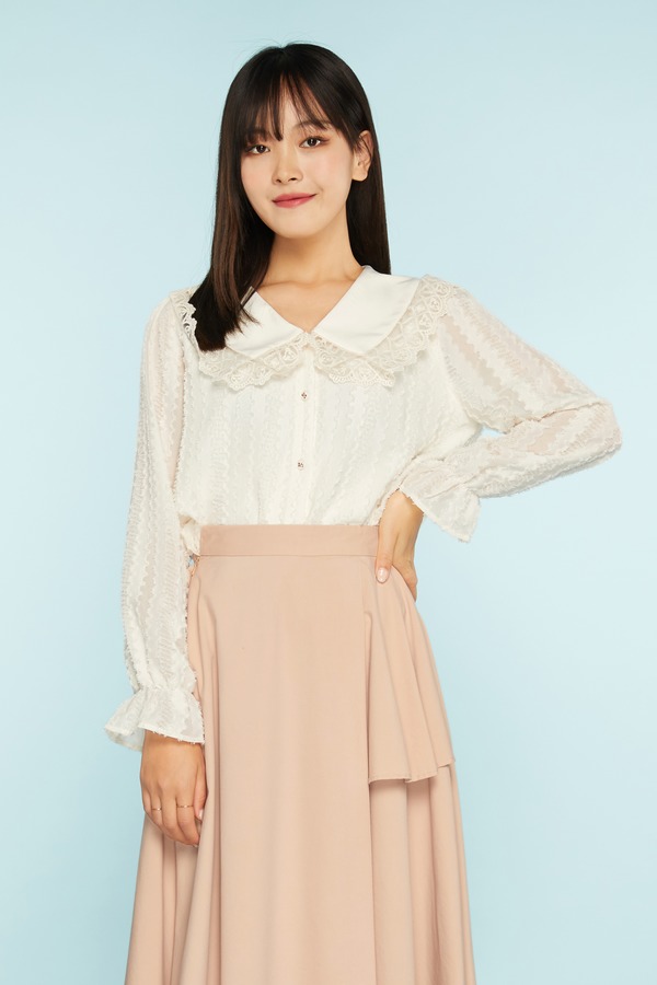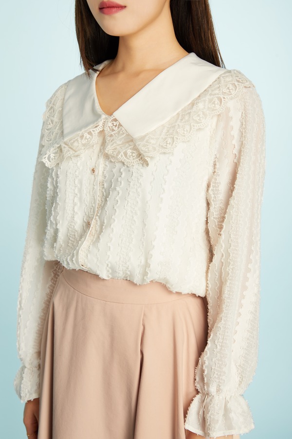 amadella 蕾丝花边领提花衬衣 11472