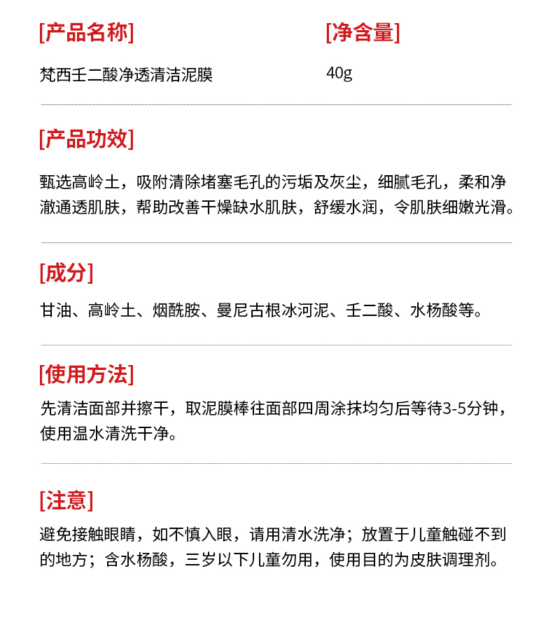 【梵西新品 119元任选3件】梵西山壬二酸清洁泥膜棒去黑白头收缩毛孔粉刺清洁神器水杨酸面膜