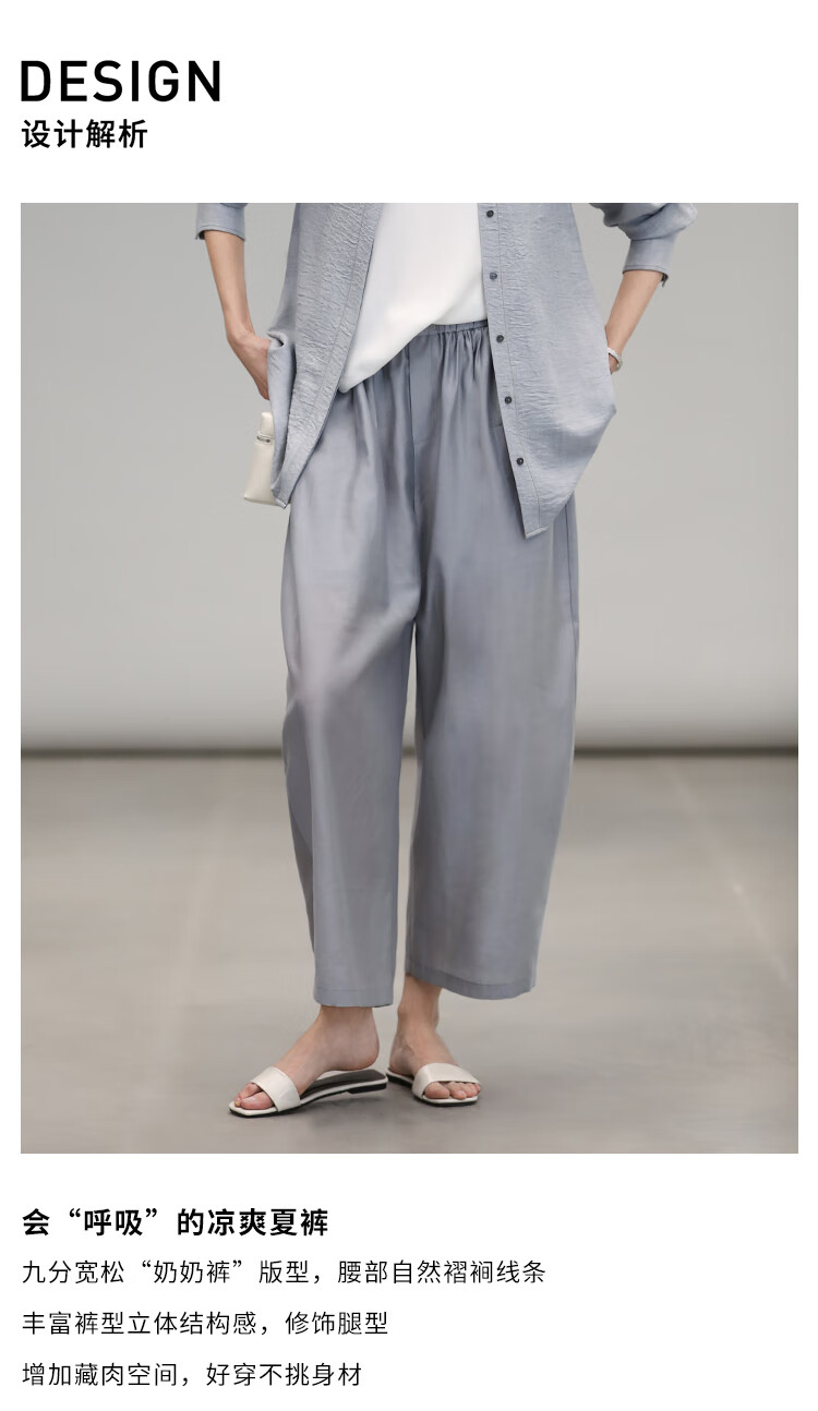 COCOBELLA简约气质莱赛尔休闲裤夏透气遮胯九分奶奶裤PA7005