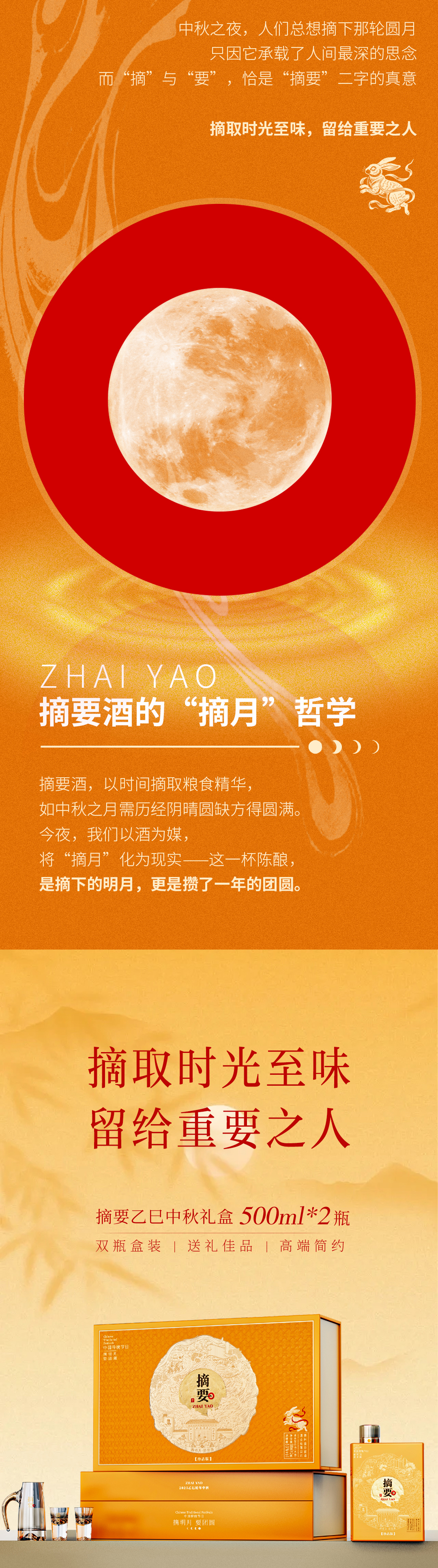 【摘要新品 中秋礼盒】53度摘要酒(乙巳中秋)礼盒装500m11*2 中秋送礼 一套2瓶 整箱4瓶