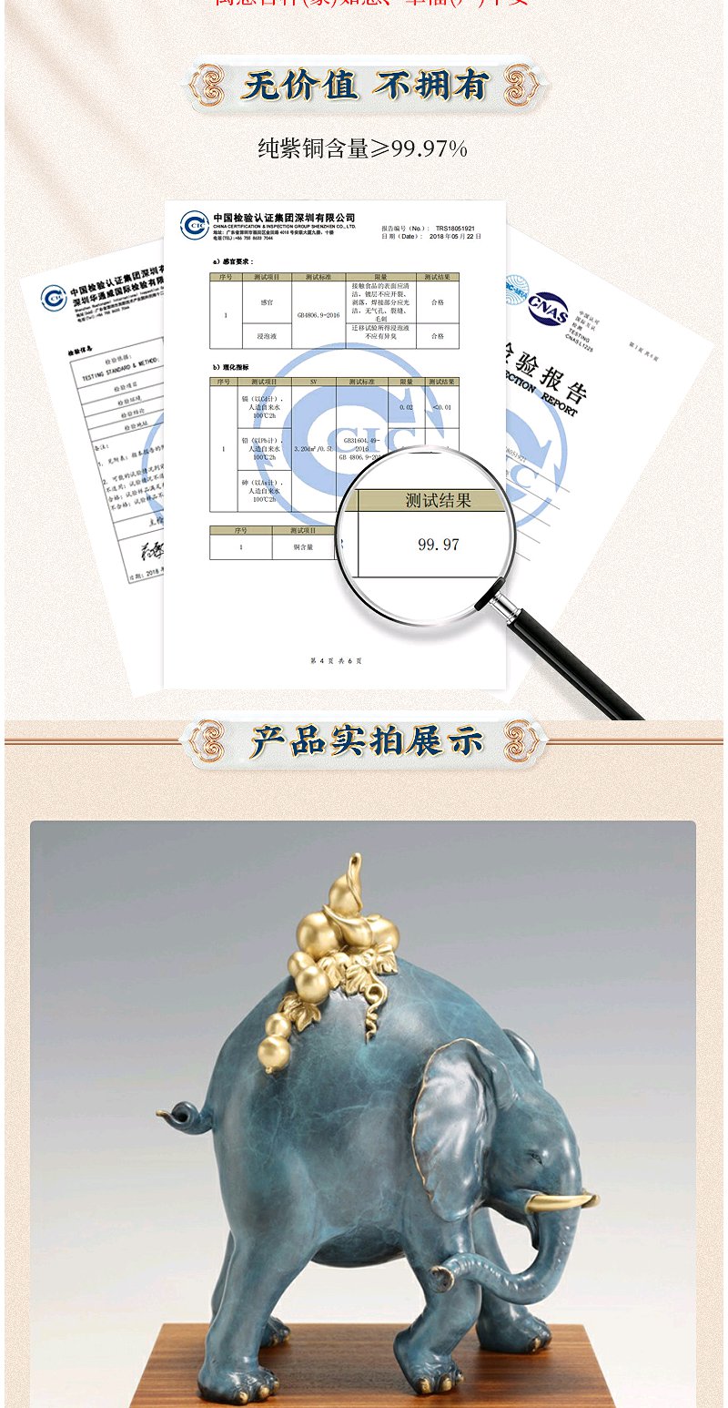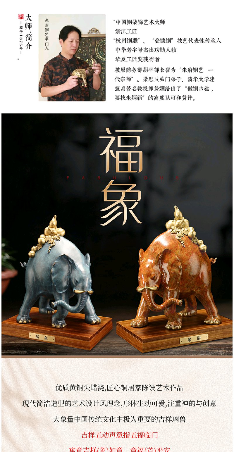 朱府铜艺 福象摆件家居装饰品客厅玄关大象摆件工艺品