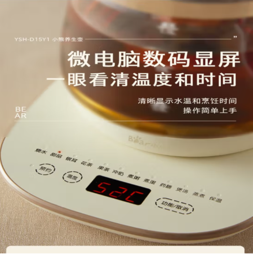 小熊 养生壶办公室迷你小型YSH-D15Y1全自动玻璃煮茶器家用多功能 淘气