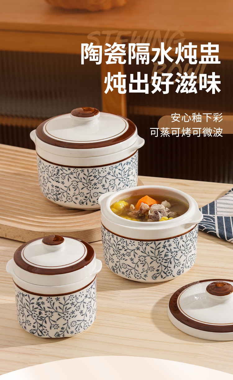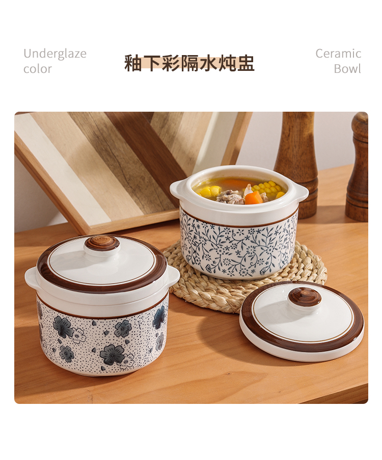 【釉下彩双耳隔水炖盅】陶瓷釉下彩手绘炖盅!!!从此刻爱上喝汤❗这小炖盅-20℃到300℃都能hold住环保无毒易清洗无铅无镉!-PJBC