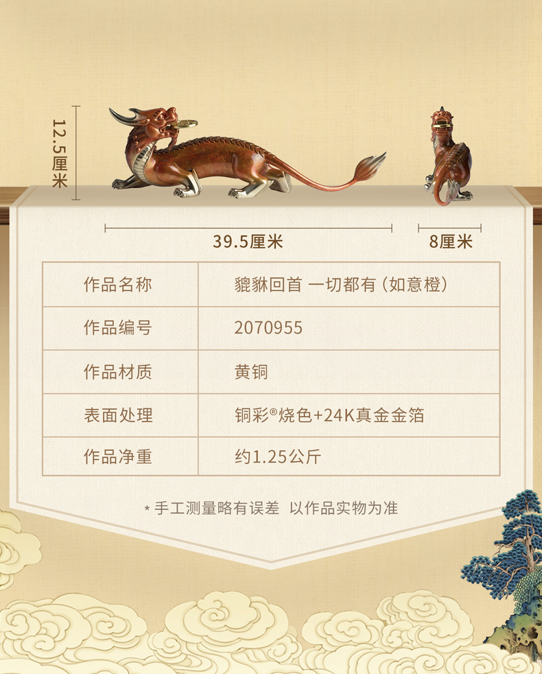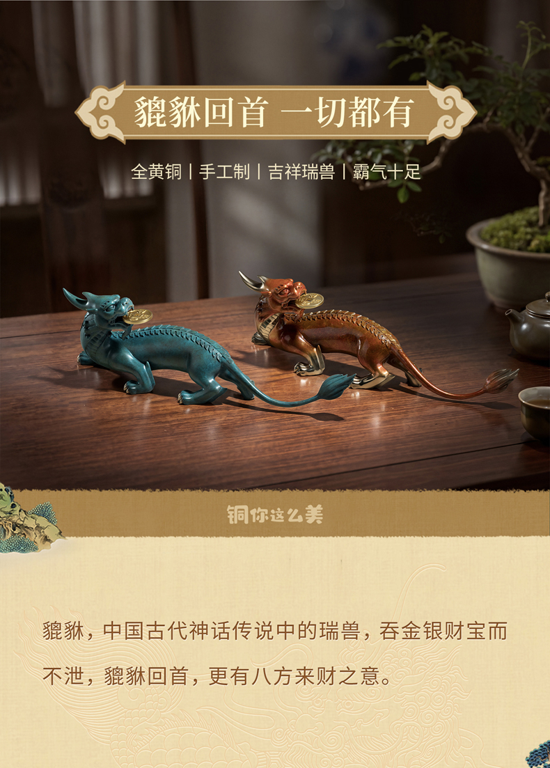 铜师傅《貔貅回首 一切都有》招财客厅铜貔貅摆件 办公室装饰品