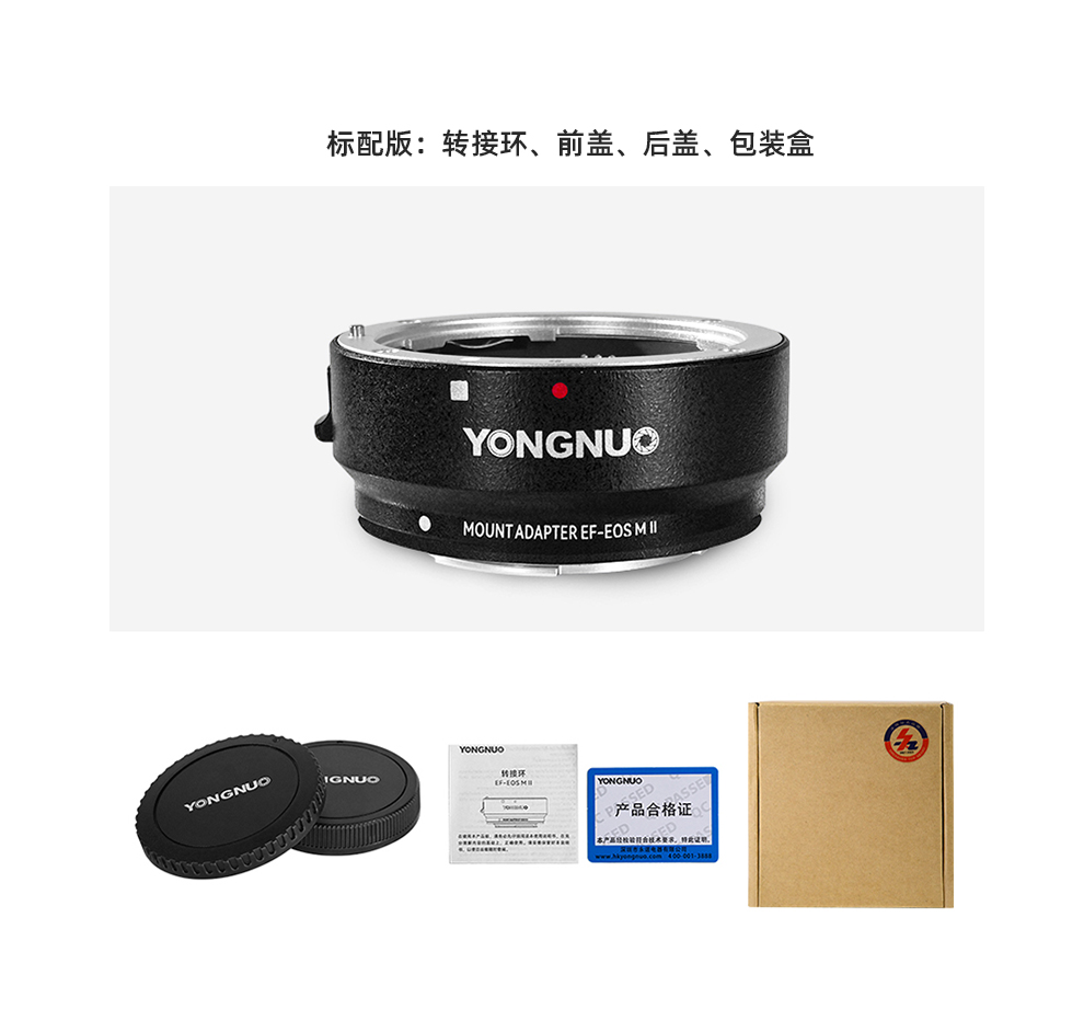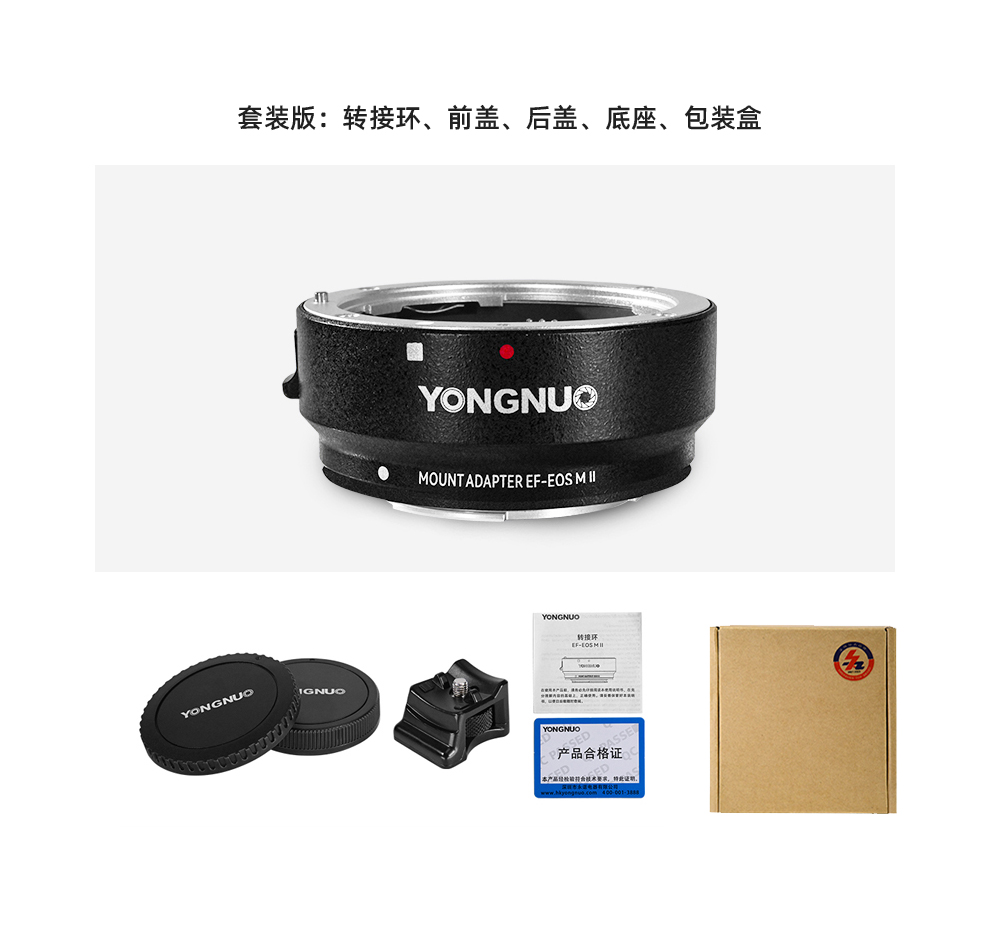 永诺 EF-EOSM II 佳能微单转接环适配器 支持转接EF EFS镜头 EF-EOS M【顺丰包邮,空运隔天到】
