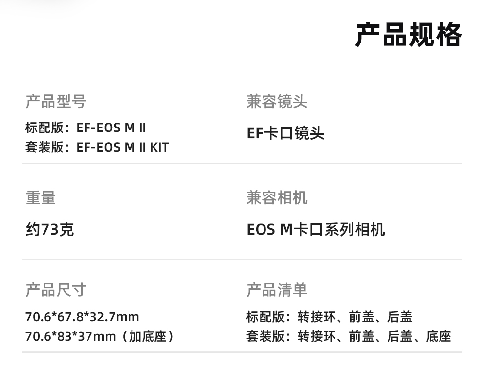 仅适用于M2/M3/M5/M6/M10/M50/M100/M200等EOS M系列相机,不适用于R系列微单。
