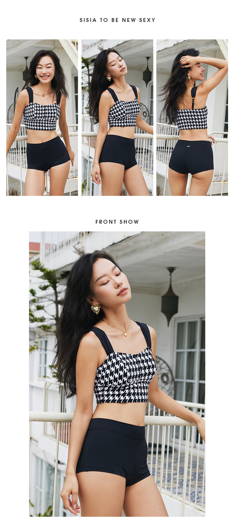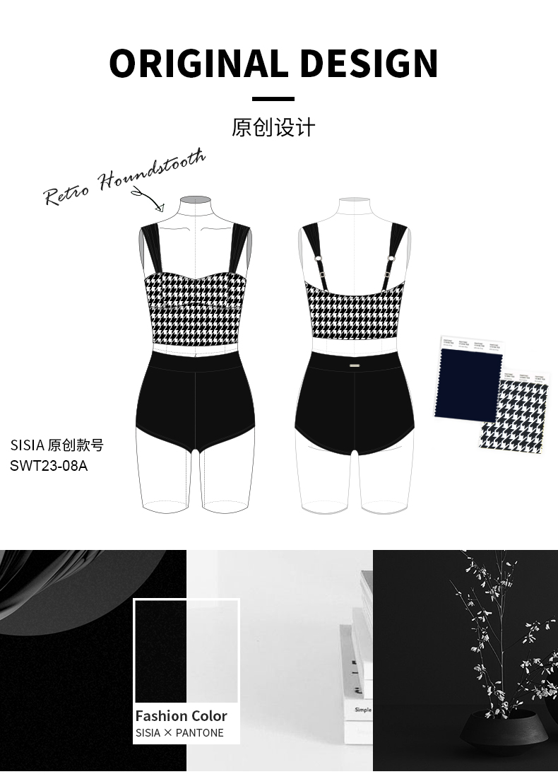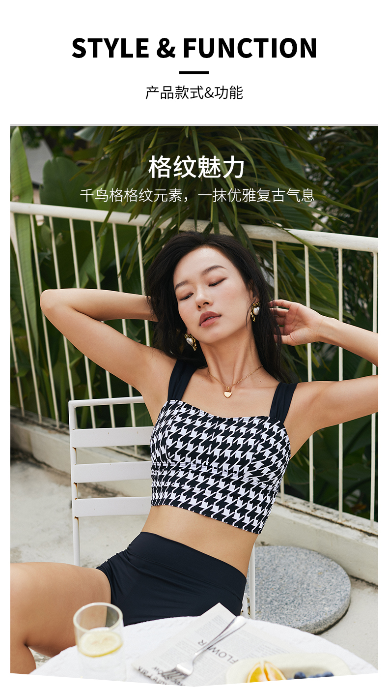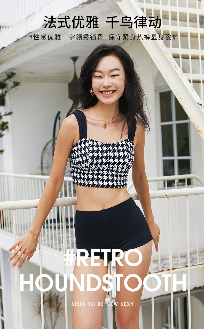 sisia2024新款泳衣女千鸟格性感复古显瘦泡温泉海岛游分体泳衣