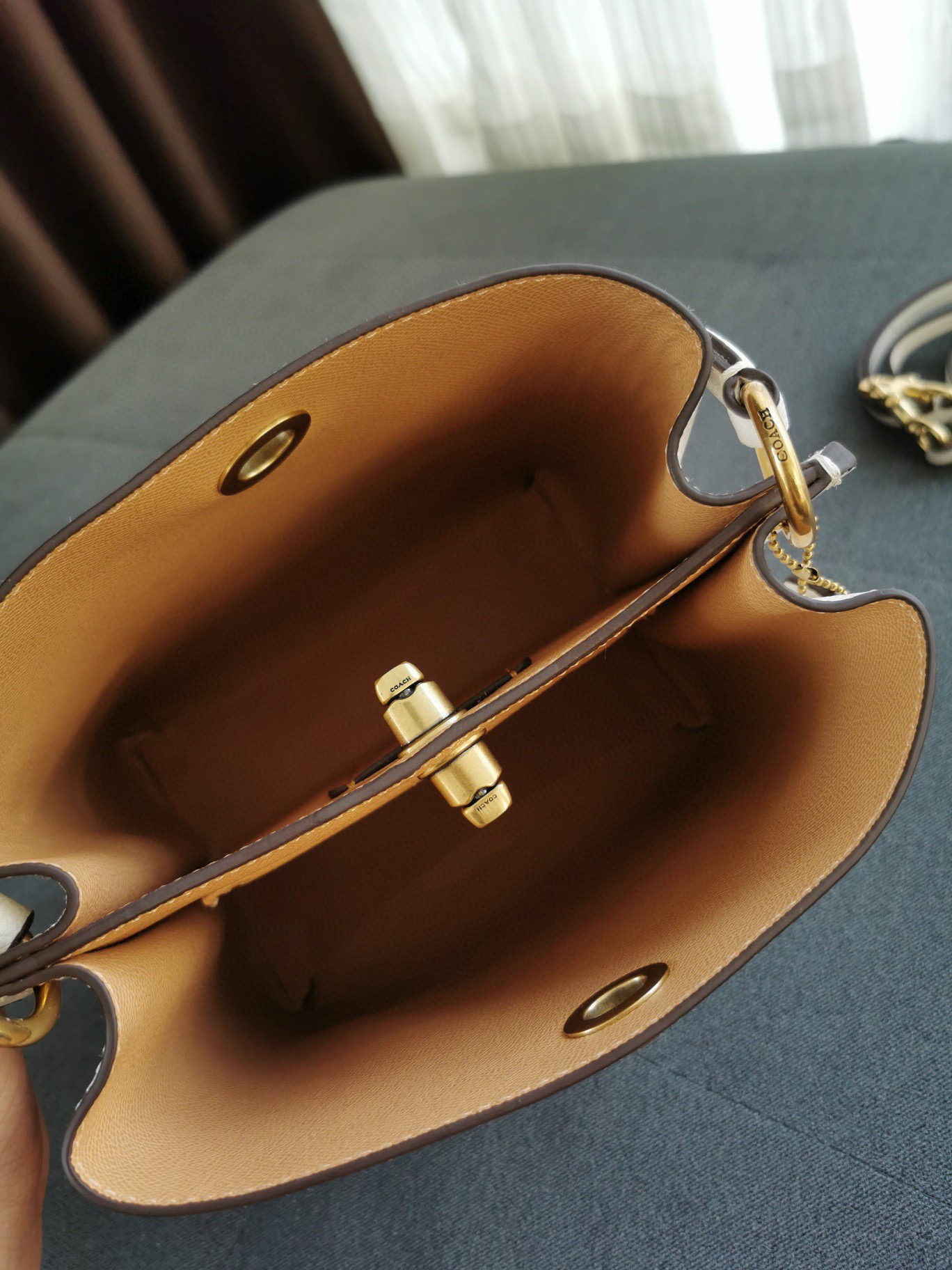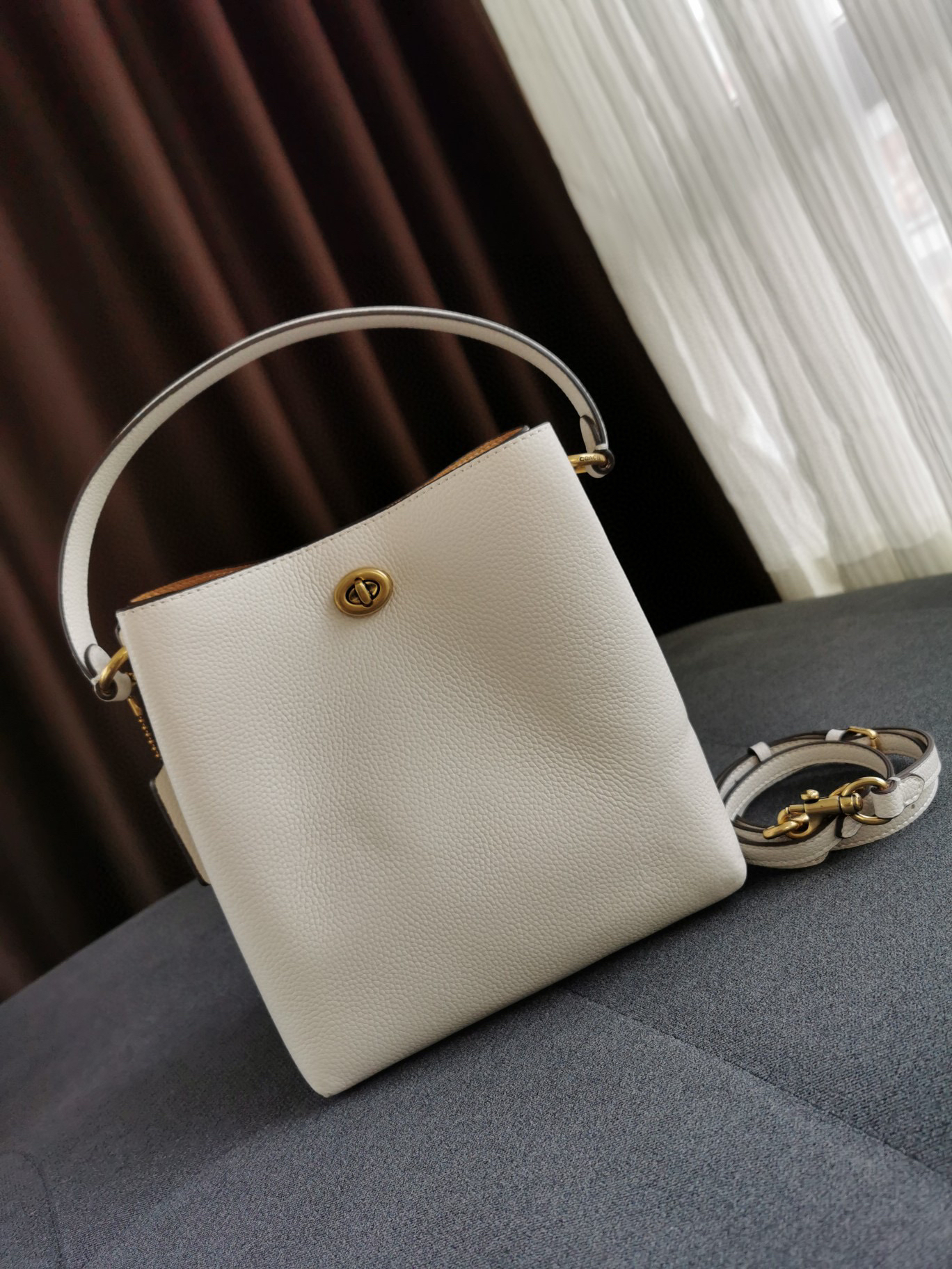 coach查理荔枝纹水桶包 小号