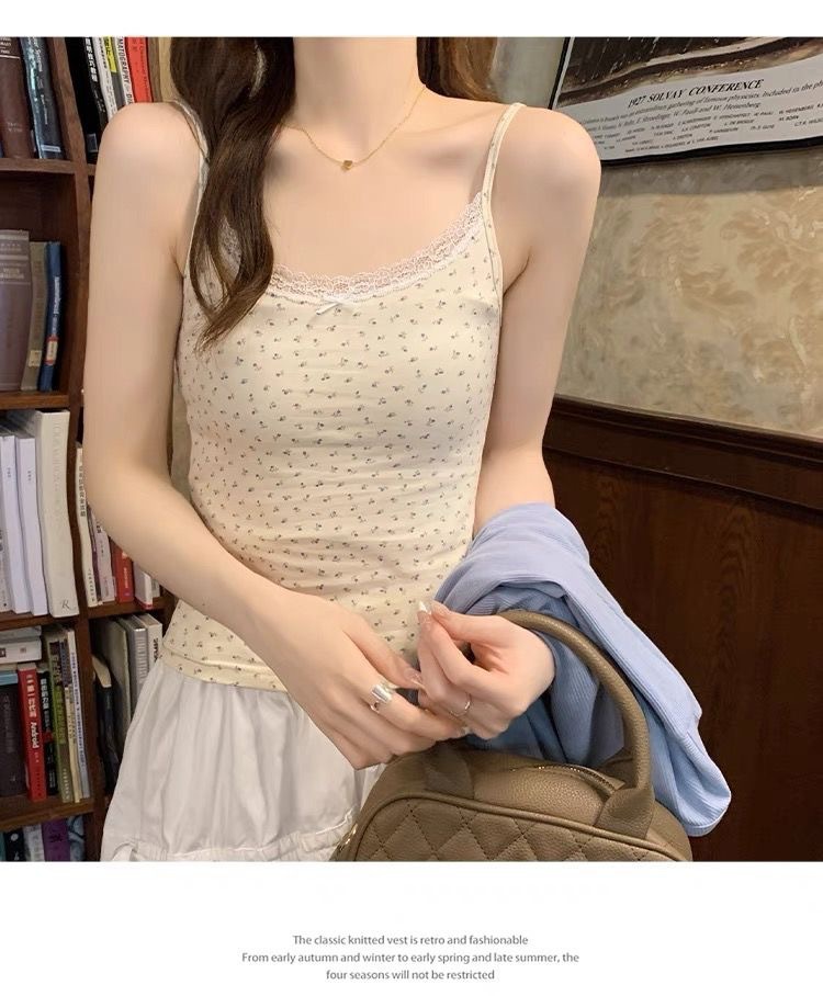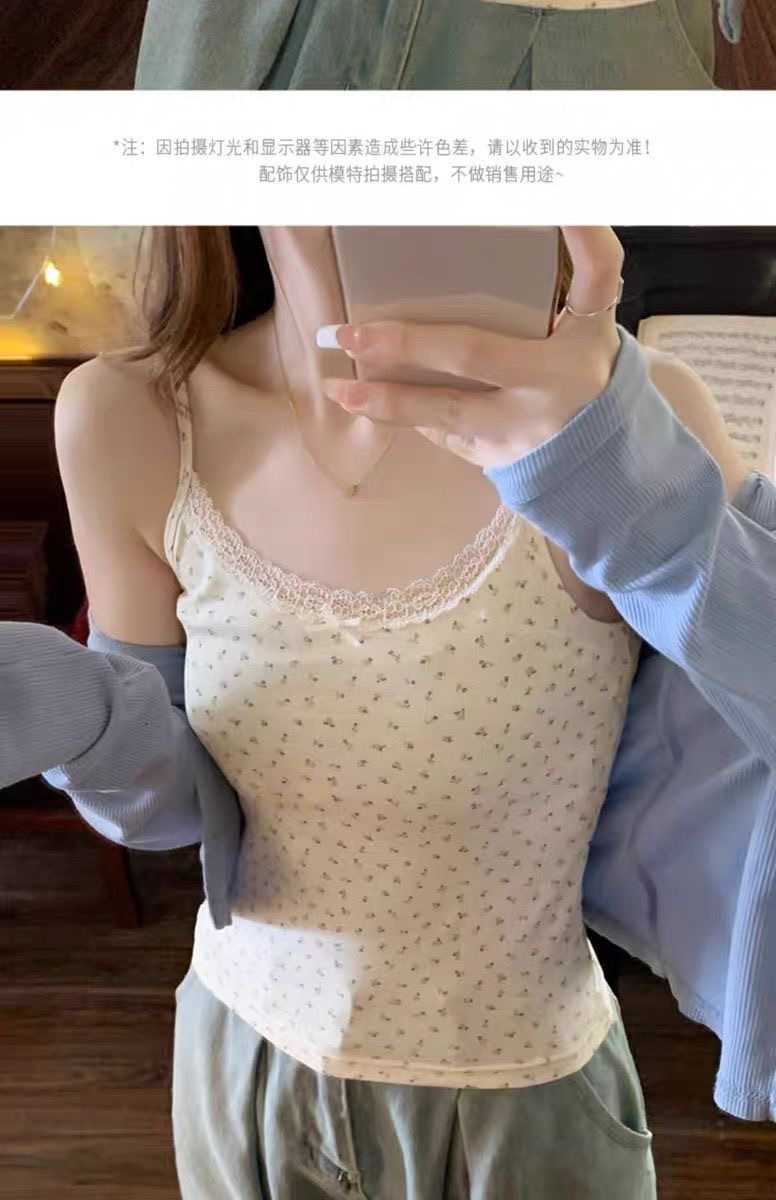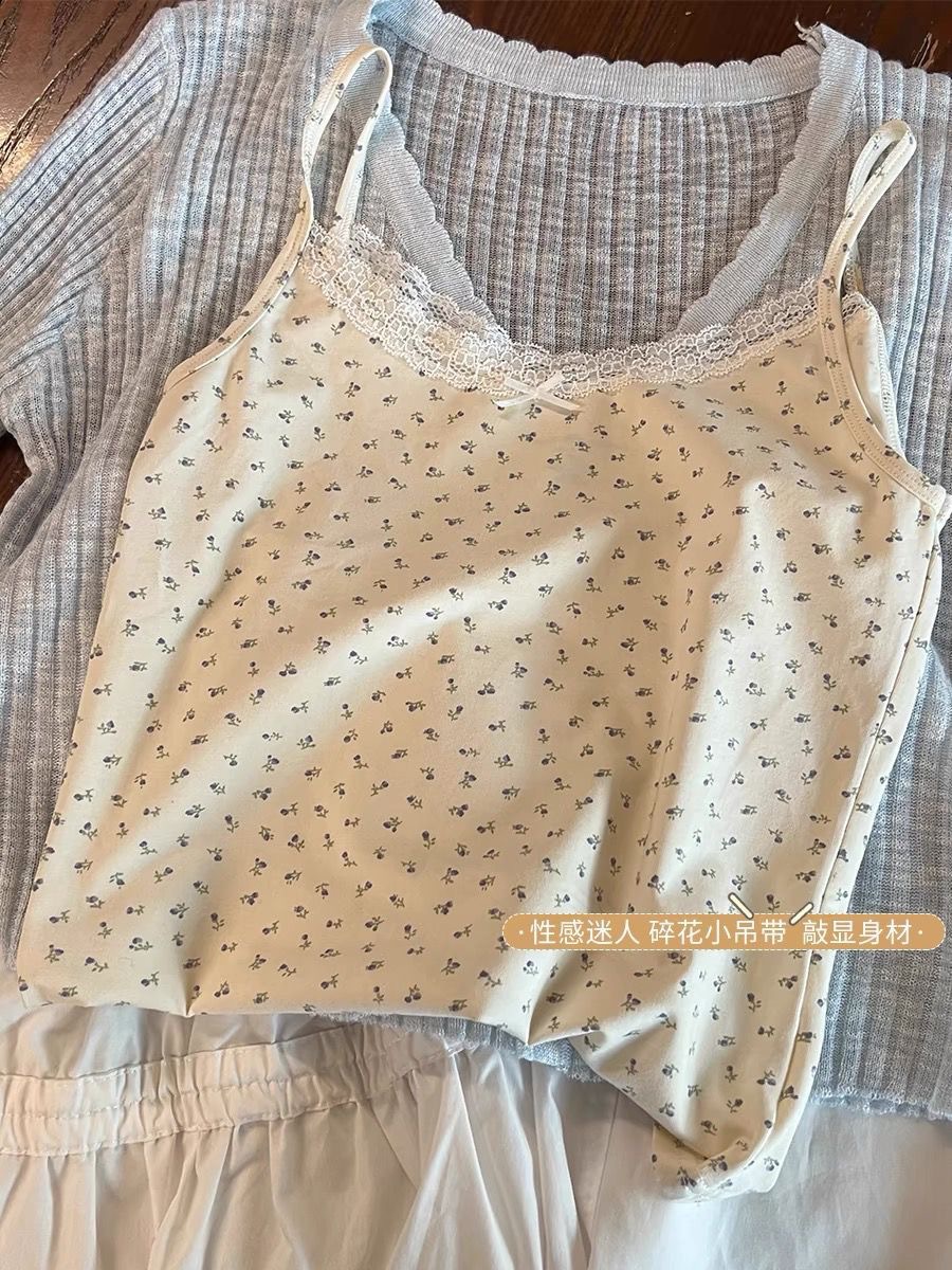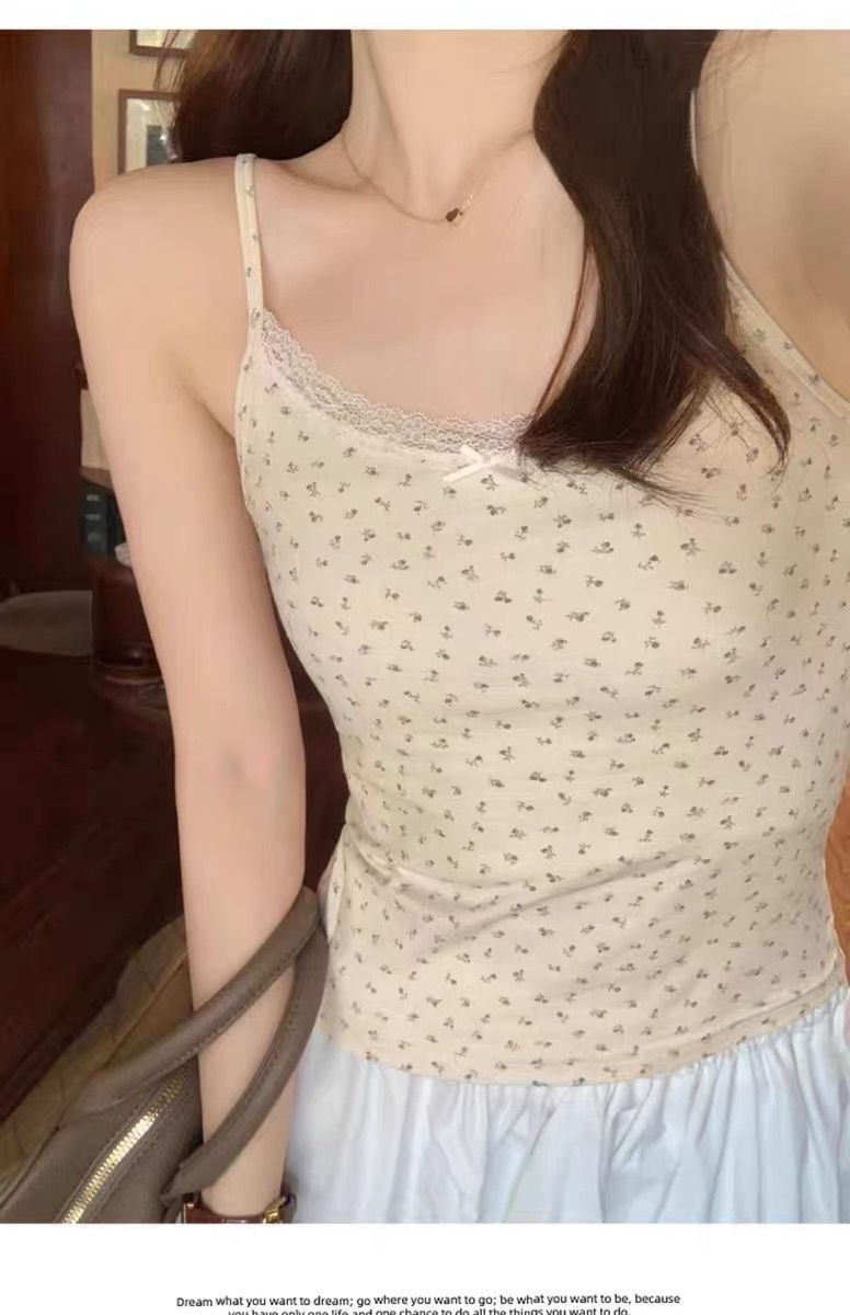 【碎花上衣,甜美之选】甜美欲滴,内搭夏季必备!纯欲甜妹,轻盈背心,美得令人心动。花边吊带配上胸垫,修身显瘦。薄款碎花上衣,为你轻松增添魅力!