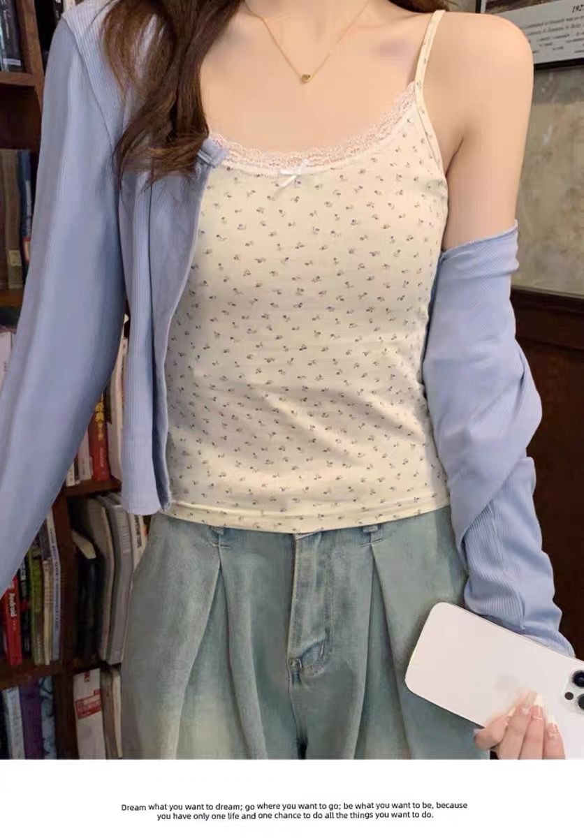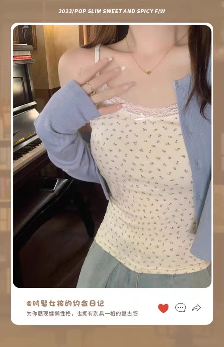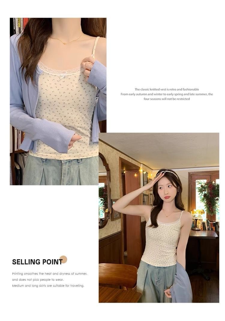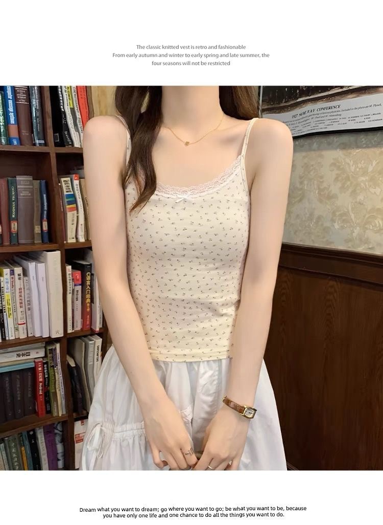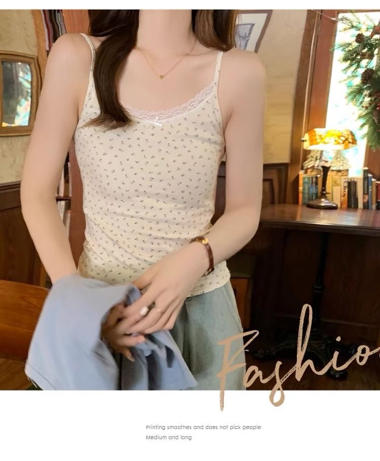 【碎花上衣,甜美之选】甜美欲滴,内搭夏季必备!纯欲甜妹,轻盈背心,美得令人心动。花边吊带配上胸垫,修身显瘦。薄款碎花上衣,为你轻松增添魅力!