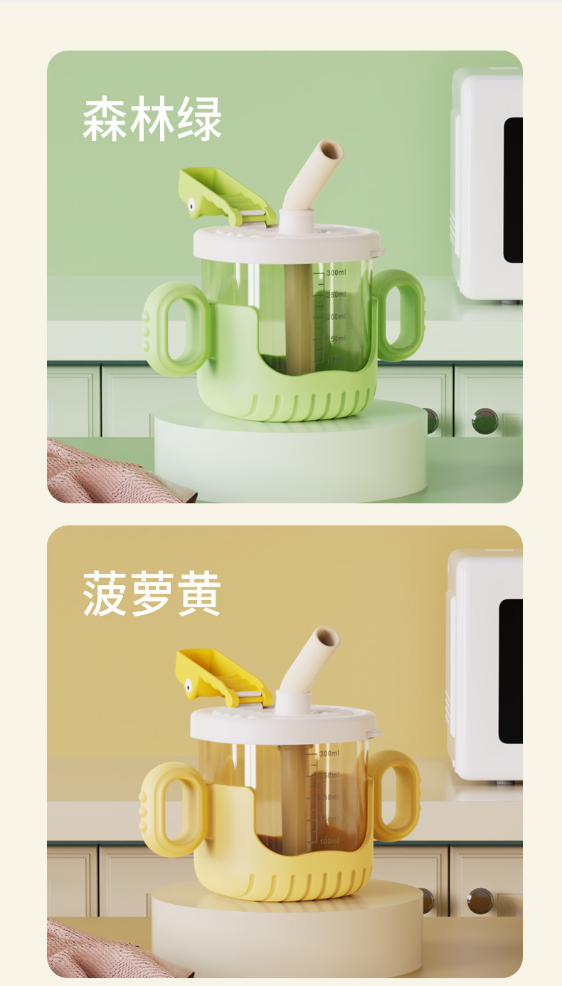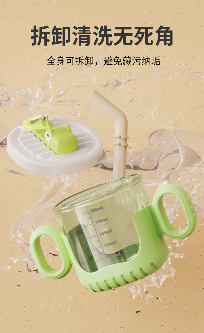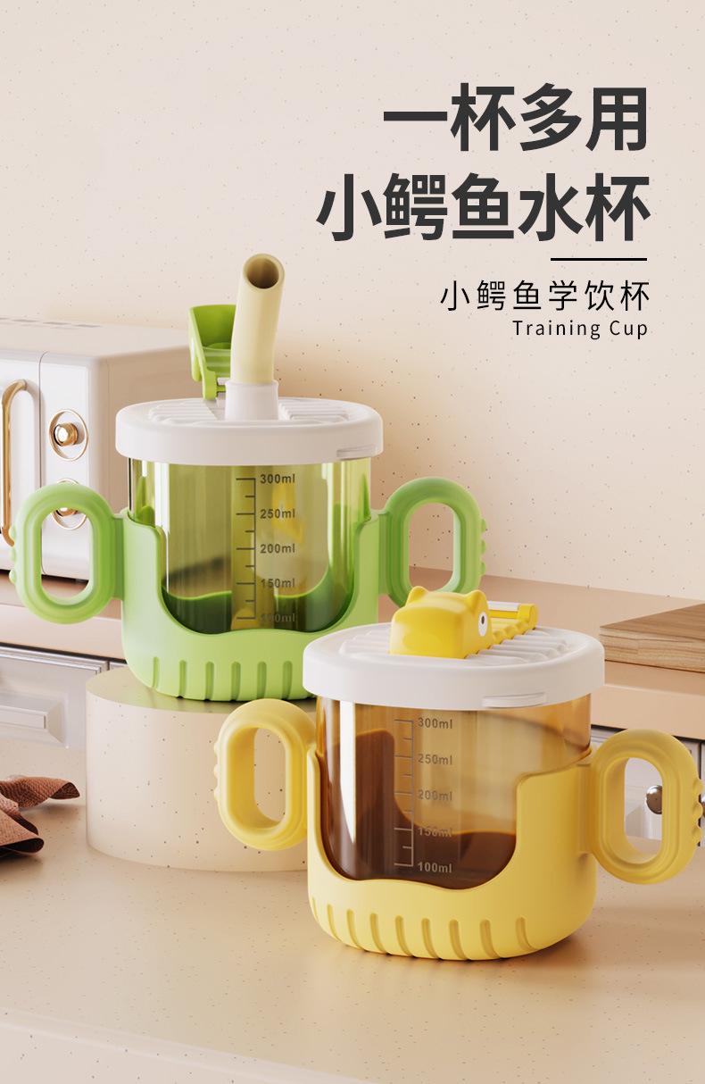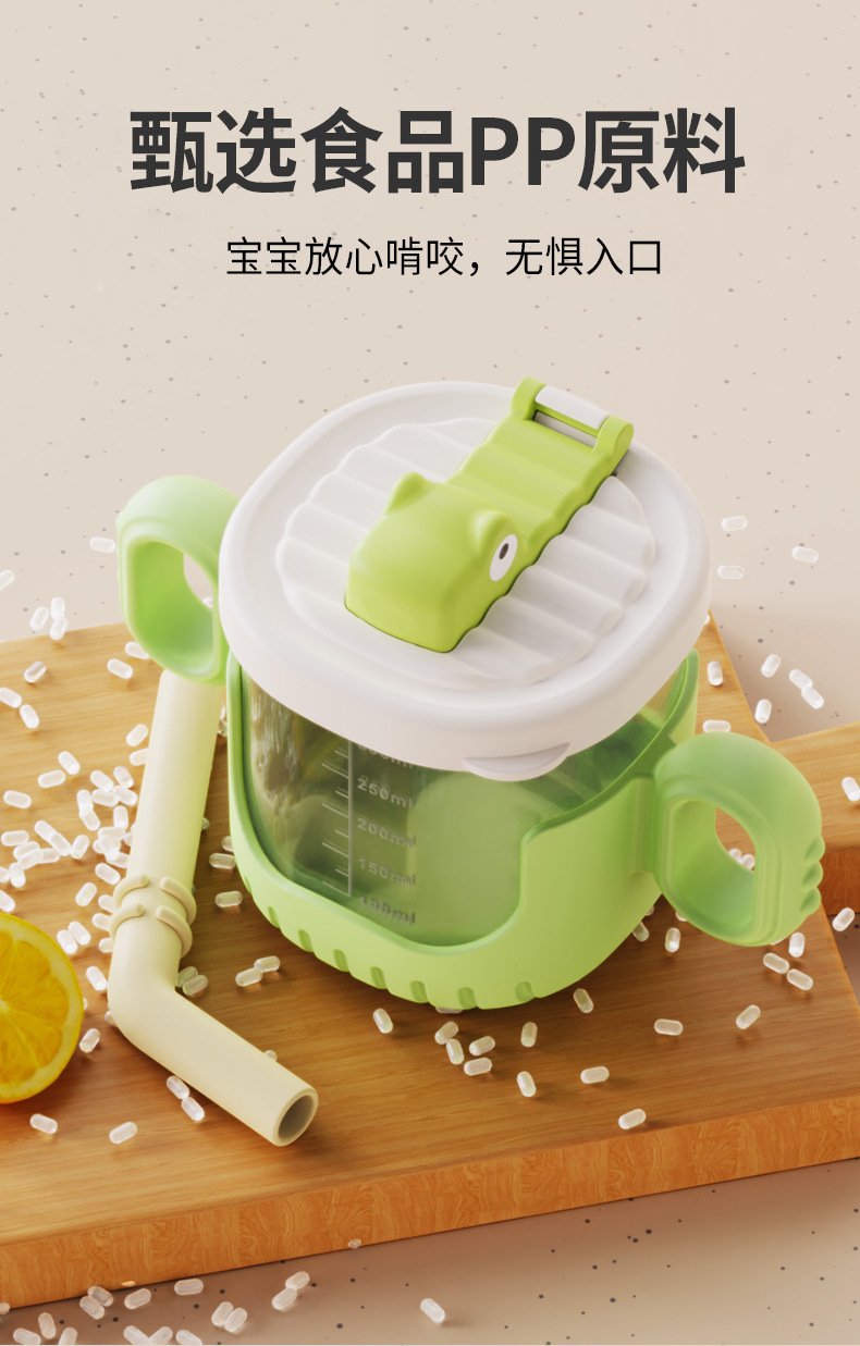 卡通鳄鱼儿童学饮杯 带手柄刻度幼儿园宝宝吸管杯 ,拆卸无死角,干净又安心!妈妈们都在抢💥