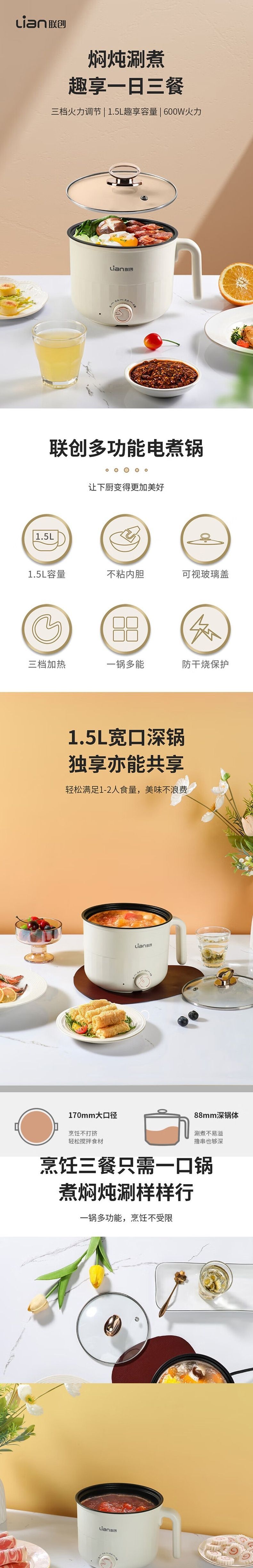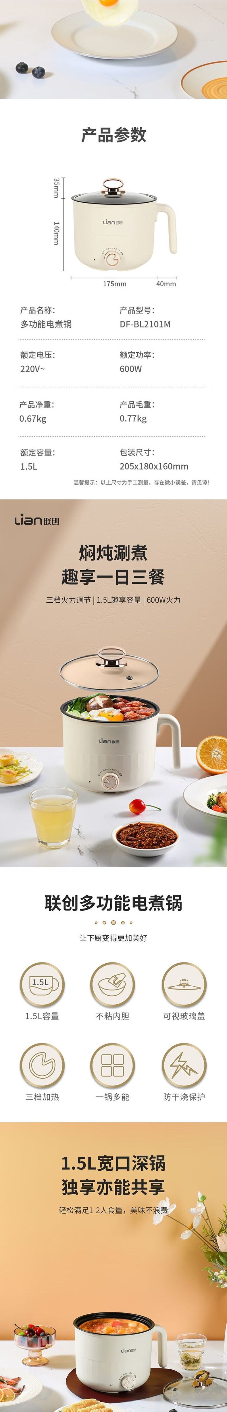 联创 多功能电煮锅 DF-BL2101M 宿舍小锅煮面火锅不粘内胆