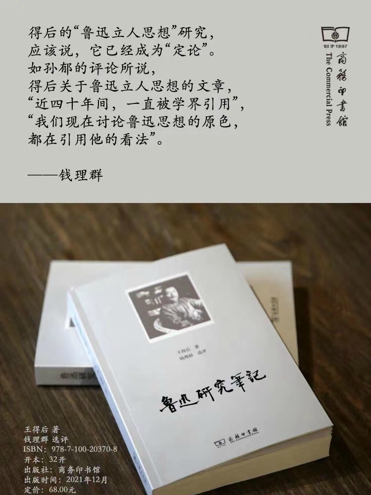 表达敬意。得后在《鲁迅研究一个重要方面军的代表—纪念李何林先生诞生一百周年》一文里,将李先生“鲁迅研究的学术遗产”概括为三个方面:其一“终身信奉鲁迅思想,把它作为自己革命一生的指南,并希望推己及人,因而力主向青年普及鲁迅,宣讲鲁迅”;其二“不唯上,不阿世,不讲情面,不为流行的时尚观点所左右,心怀坚定的鲁迅信仰,表现出难能可贵的特操”;其三“对于鲁迅作品,运用逐字逐段的‘串讲’的方式,细心地严谨地领会鲁迅的思想”,“证实与证伪”,“开今日‘细读’‘精读’鲁迅的传统”。应该说,李何林先生领军的这一鲁迅研究的“重要方面军”在二十世纪八十年代、九十年代的历史条件下,是有了新的发展的。得后和王富仁都是重要成员,我自己也愿意忝列其中。当然,我们也并不完全认同李何林先生的观点,如得后所说,“李先生既留给我们宝贵的遗产,也留给了我们时代性的教训”,需要有新的发展。我们要继承、发扬的是最关键的两条:一是以鲁迅思想作为基本信念,以研究和传播鲁迅思想为自己的历史责任;二是坚持鲁迅研究者应有“特操”,“不唯上,不阿世,不讲情面,不为流行的时尚观点所左右”。在我们看来,鲁迅是一位在现当代中国少有的具有原创性的思想家,以他的思想为基本信念,是一个自然的选择。鲁迅是五四启蒙传统的最重要的代表,在二十世纪八十年代的新启蒙运动中,研究与传播鲁迅思想正是时代的需要与必然;而鲁迅思想又超越了启蒙主义,在后启蒙时代也依然能够不断给我们以新的启示。这绝不是将鲁迅“神化”;得后、富仁和我都坚定地认为,现在的问题,恰恰是对鲁迅思想的丰富性、复杂性、原创性、前瞻性,他对中国与世界的现实与未来的作用和影响,远远估计与认识不足,一切都还仅仅是开始。何况今天的中国,还远远不是“敞开来谈鲁迅”的时候。得后在回忆深知、真知鲁迅,身为鲁迅的朋友和研究者的杨霁云先生的文章里,特意提到杨先生的一个判断:“改造中国人,改造中国社会,确是鲁迅终身致力的信念。但社会势力坚于原子核,至今收效如何,有目共睹。……到诞辰四百年的时候,倘能稍有成效乎?”“立人,目的在改造人及社会,不