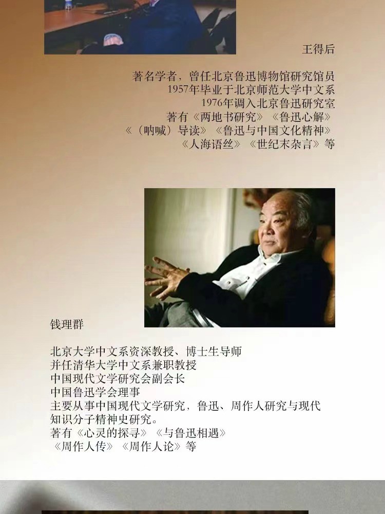 王得后,著名学者,曾任北京鲁迅博物馆研究馆员。1957年毕业于北京师范大学中文系。1976年调入北京鲁迅研究室,从事专业研究。著有《两地书研究》、《鲁迅心解》、《(呐喊)导读》、《鲁迅与中国文化精神》、《人海语丝》、《世纪末杂言》等专著。