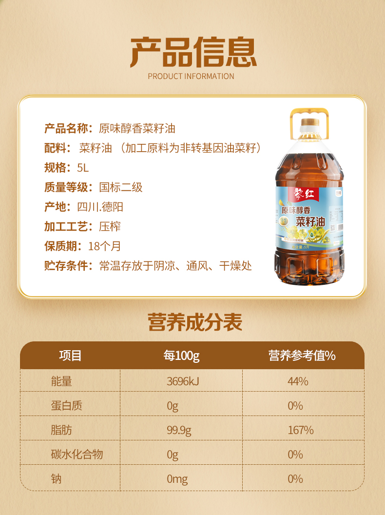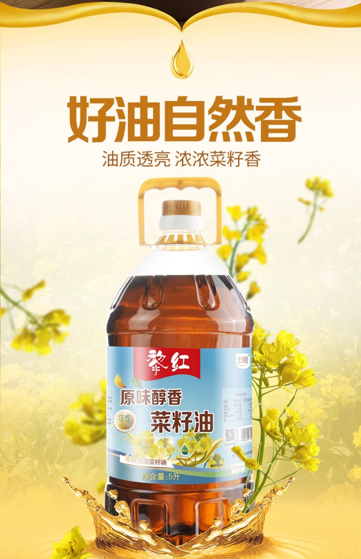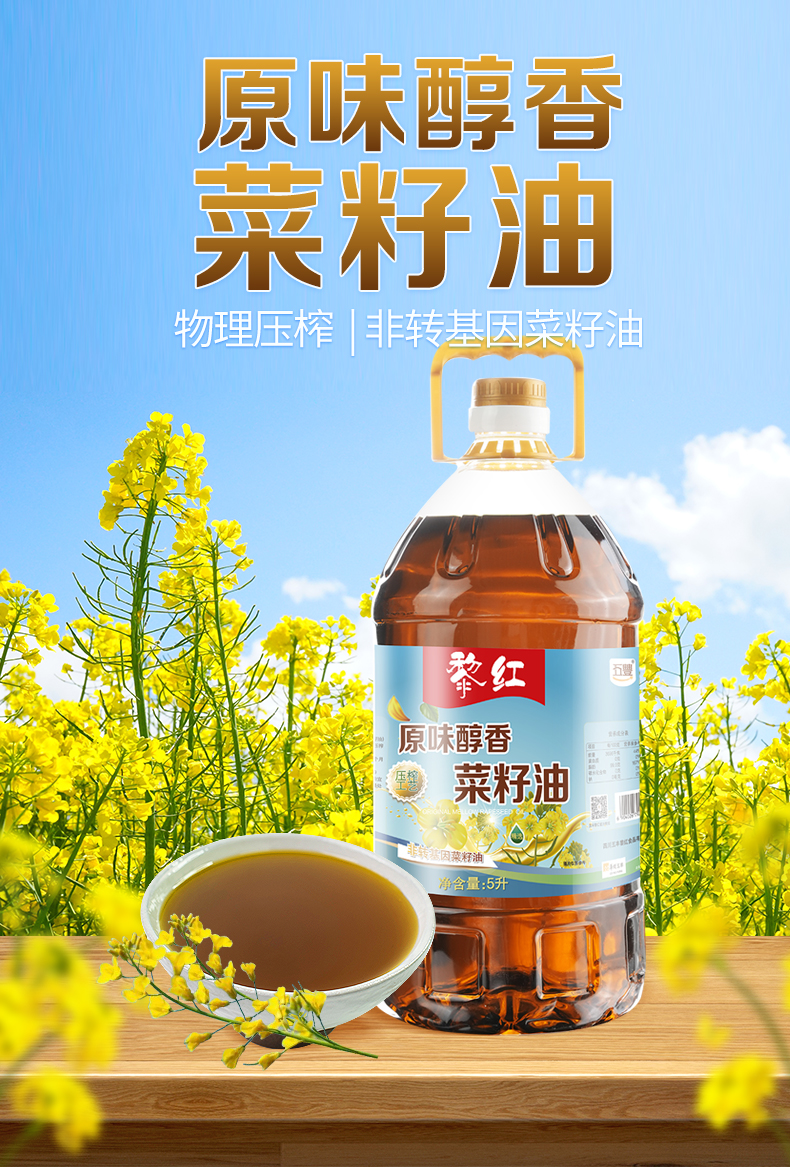 五丰黎红原味醇香菜籽油5L四川风味菜籽油菜油物理压榨植物油LY