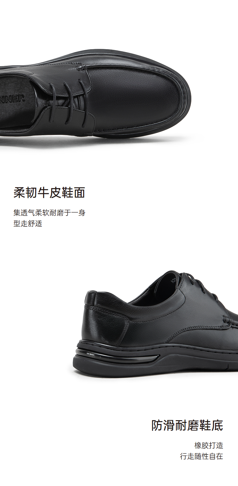 千百度男鞋秋季通勤系带男士德比鞋真皮皮鞋商务休闲舒适A23480902