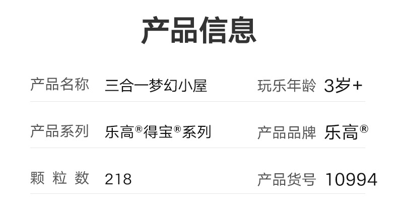 乐高&德宝梦幻积木三合一小屋 玩过过家家选它 一起布置家庭小屋10994 早教积木玩具礼物