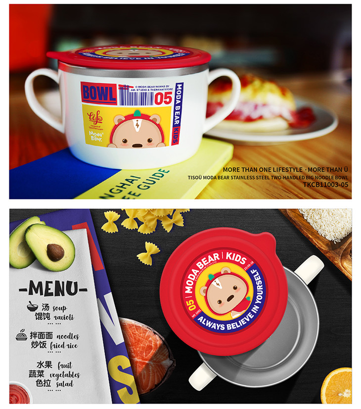 韩国 爱婴小铺 儿童不锈钢双手柄大面碗(带盖)650ml