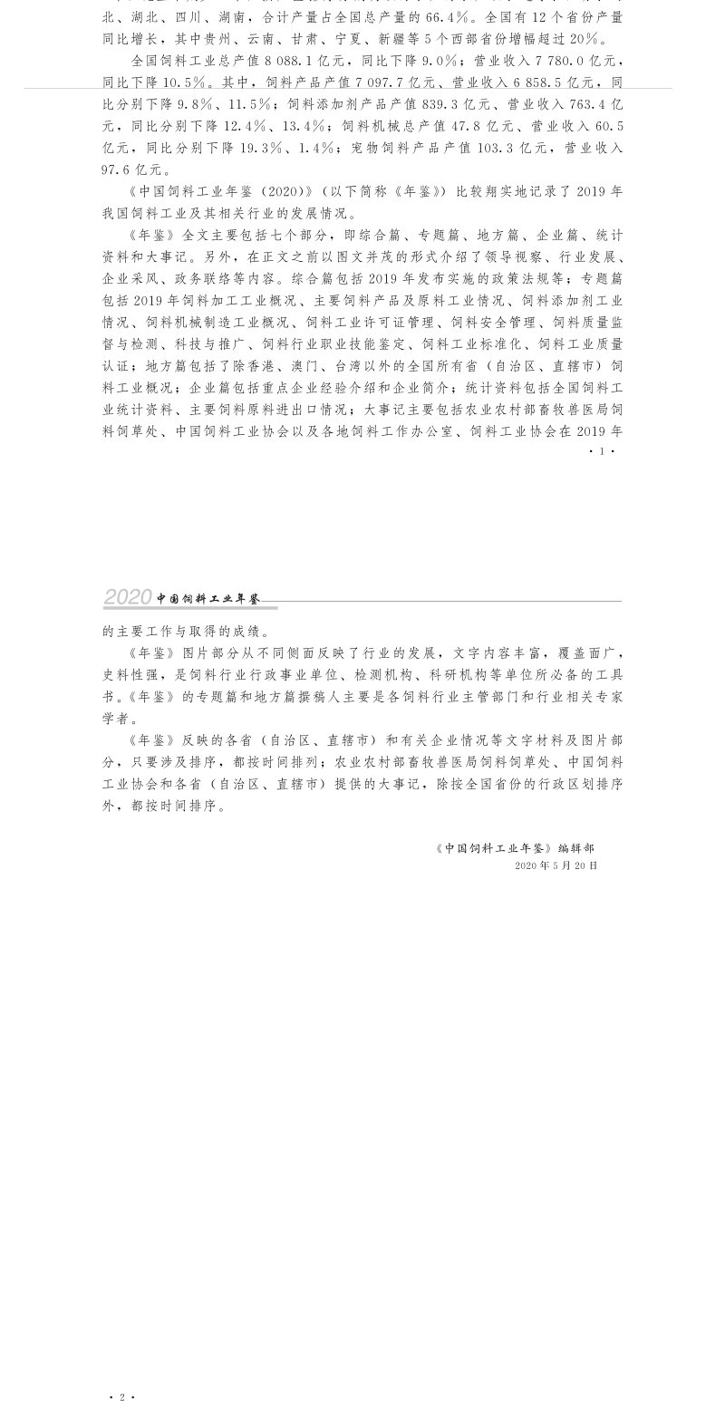 2020中国饲料工业年鉴 27650 2020年 中国饲料 工业 年鉴 中国工业 饲料年鉴