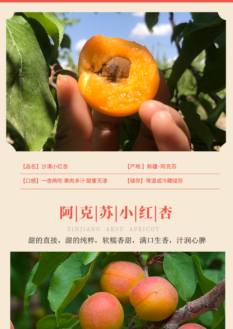 新疆阿克苏兵团小红杏【3斤60-80枚】