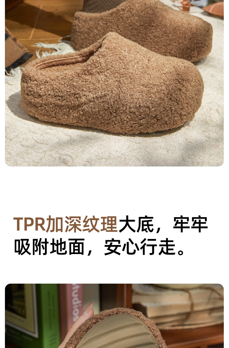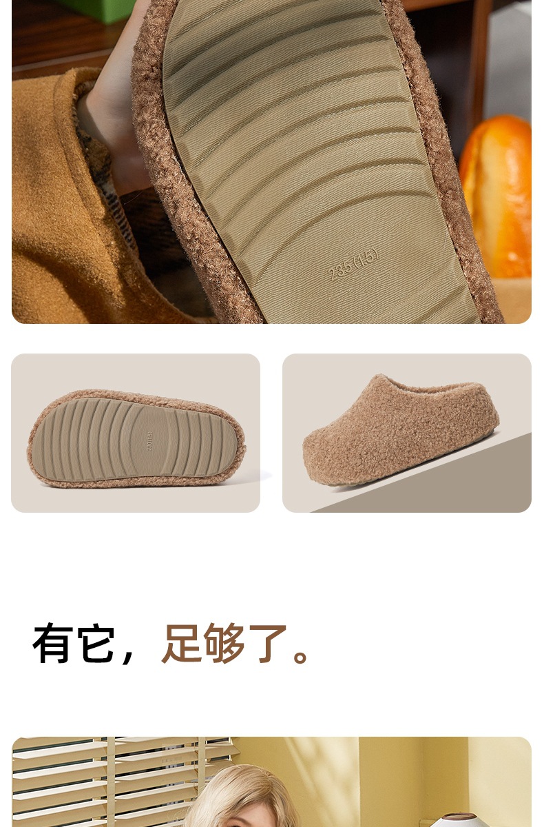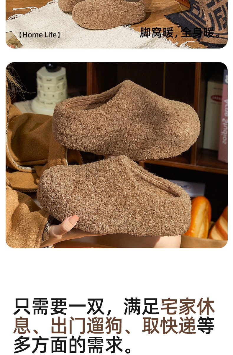 冬款新款简约时尚纯色厚底女款舒适棉拖鞋毛毛鞋一脚蹬【WG25138】