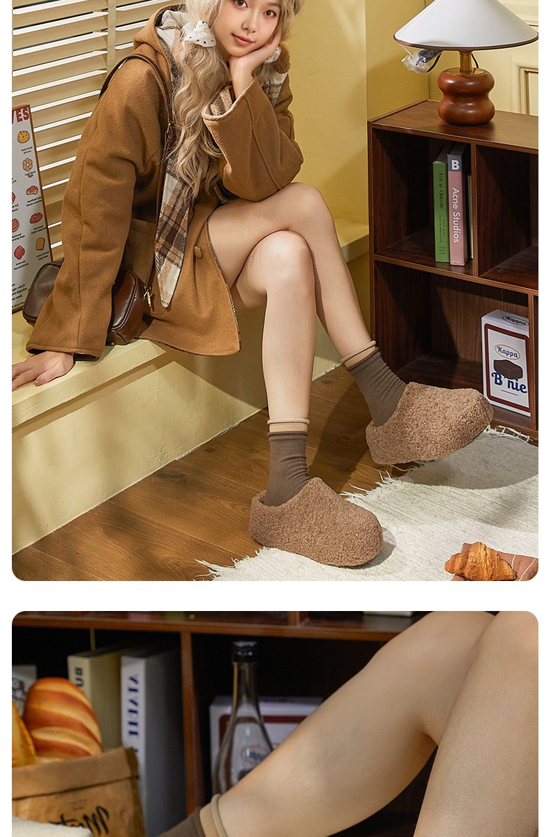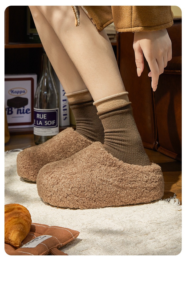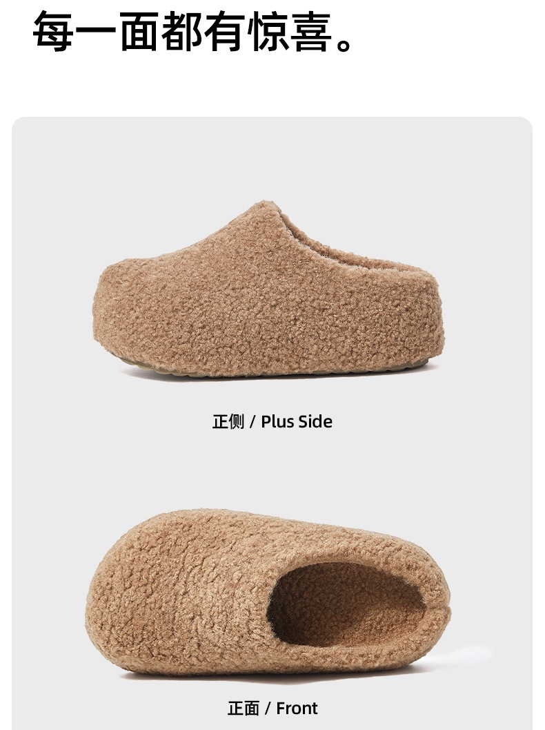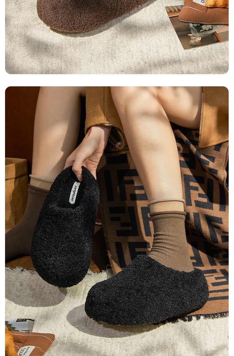 冬款新款简约时尚纯色厚底女款舒适棉拖鞋毛毛鞋一脚蹬【WG25138】