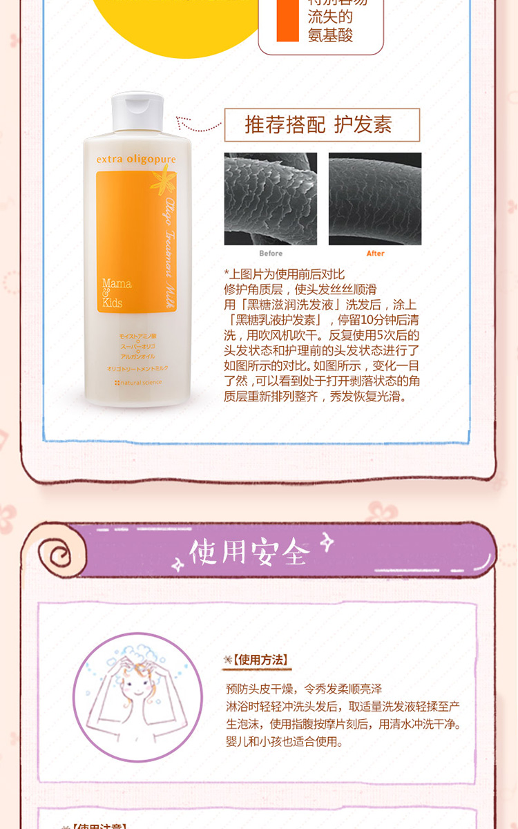 日本本土版,滋养头皮有效改善孕妈在孕期头皮容易发油脱发头发干枯毛糙的困扰,孕期和产后都可以安心使用的洗发水。全家都可以使用。