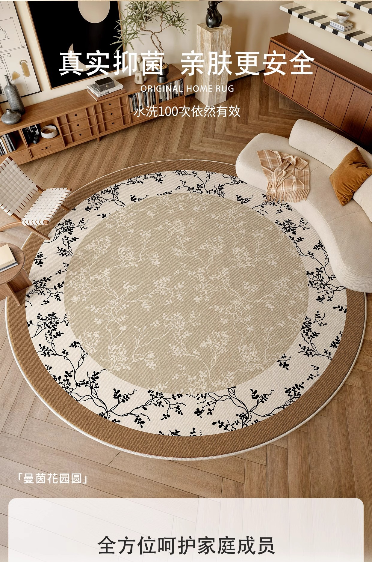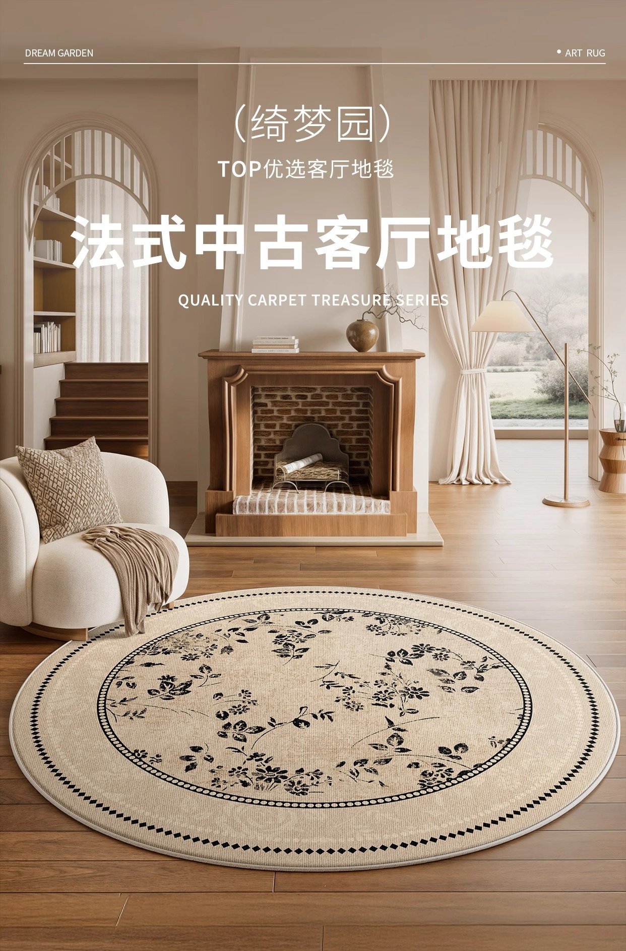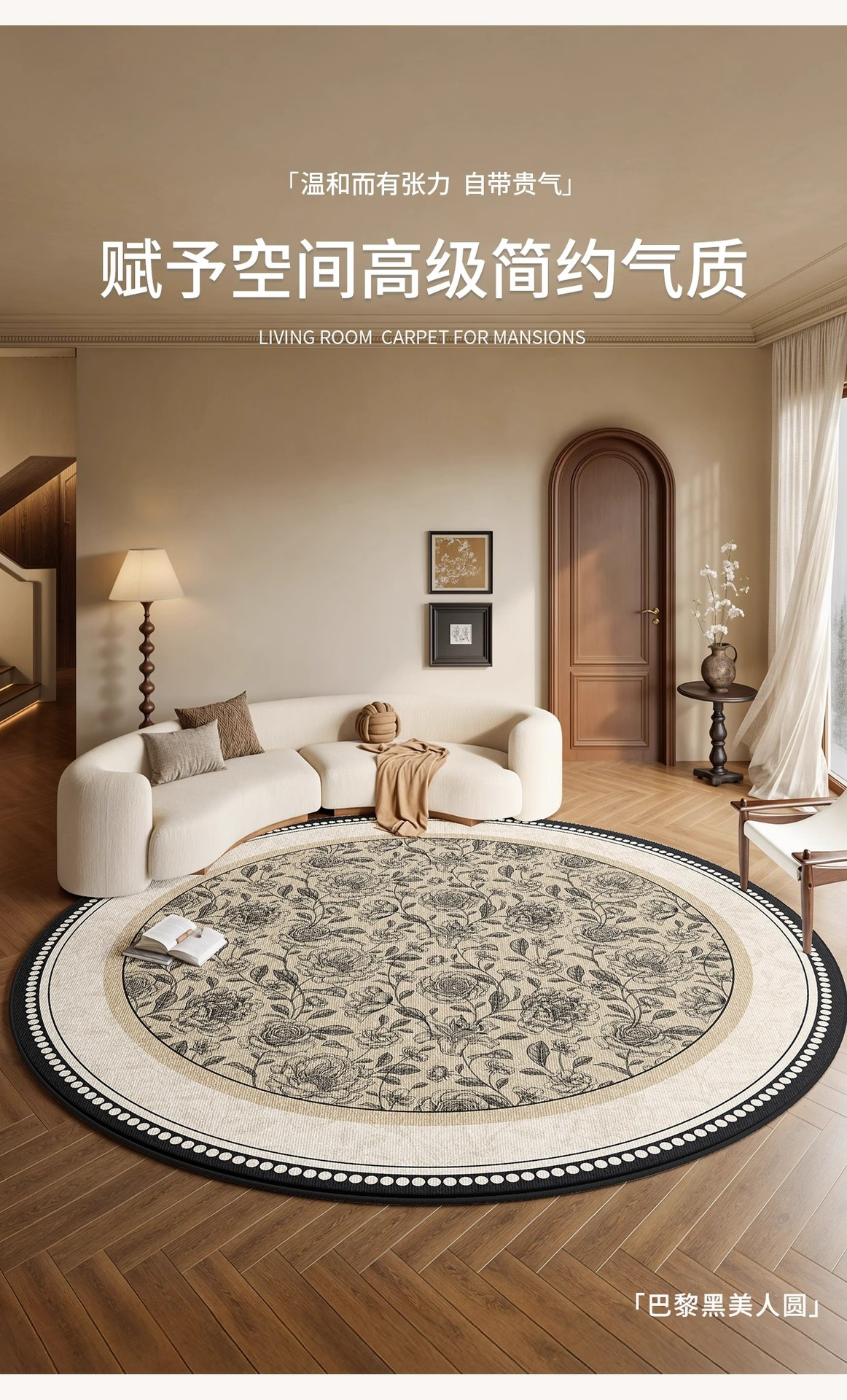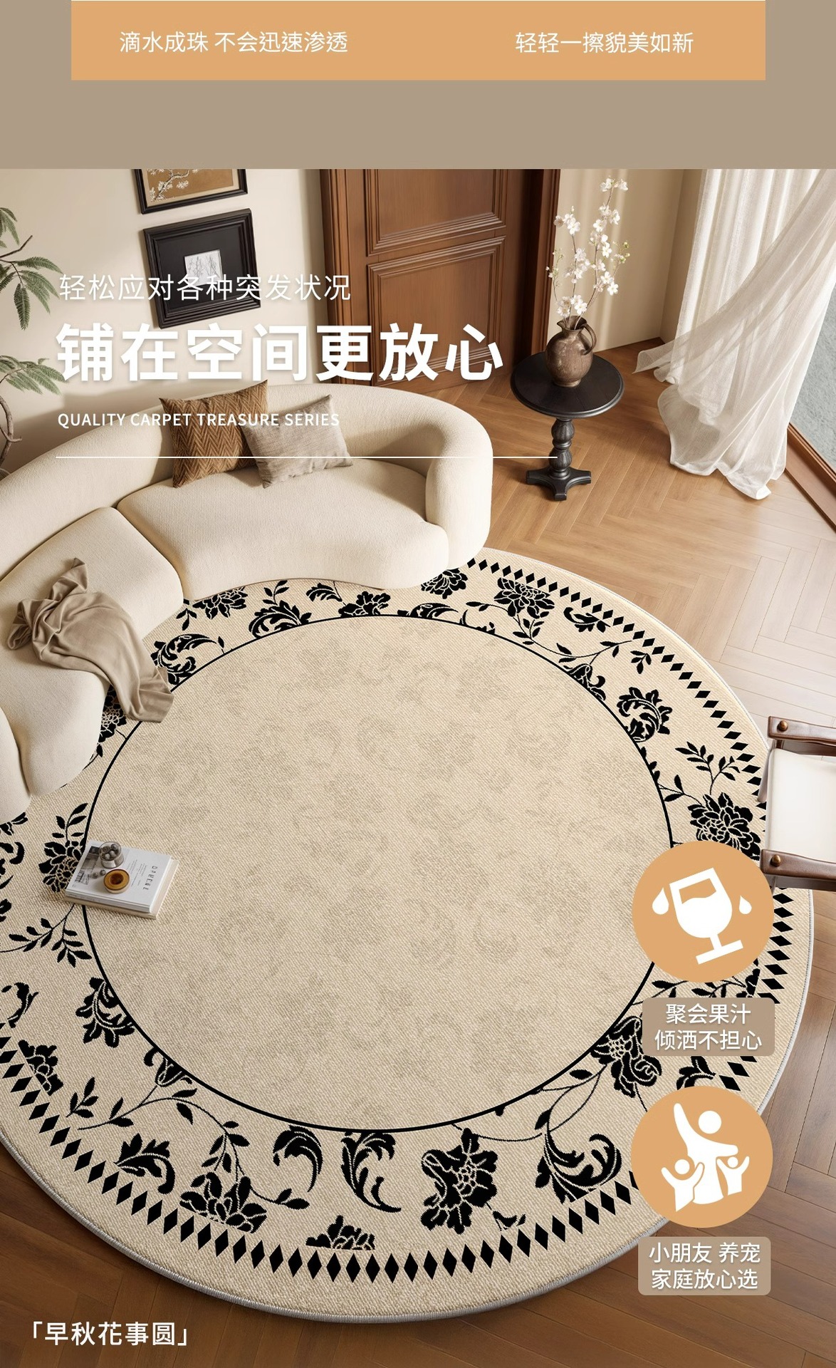 【法式中古风🖤原纱抗+0甲醛】 衣帽间化妆间地垫 圆形地毯惊艳上线!✨母婴可用、防滑抗菌、擦即净,轻松打造轻奢级客厅&卧室!